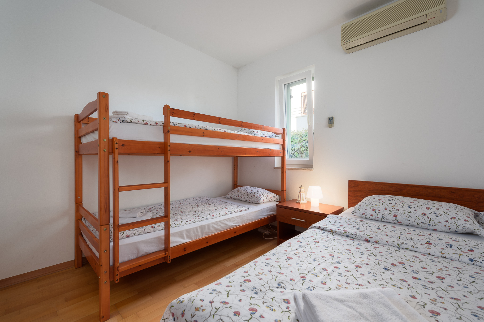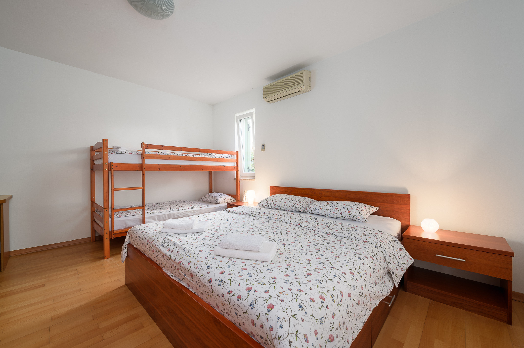 Das Apartment verfügt über vier gut ausgestattete Schlafzimmer, in denen bis zu 8 Gäste bequem Platz finden. Die Schlafzimmer sind mit einer Mischung aus Doppel-, Einzel- und Etagenbetten ausgestattet, sodass für alle ausreichend Schlafgelegenheiten vorhanden sind. Die drei Badezimmer, alle mit Duschen, bieten Komfort und Privatsphäre für alle.