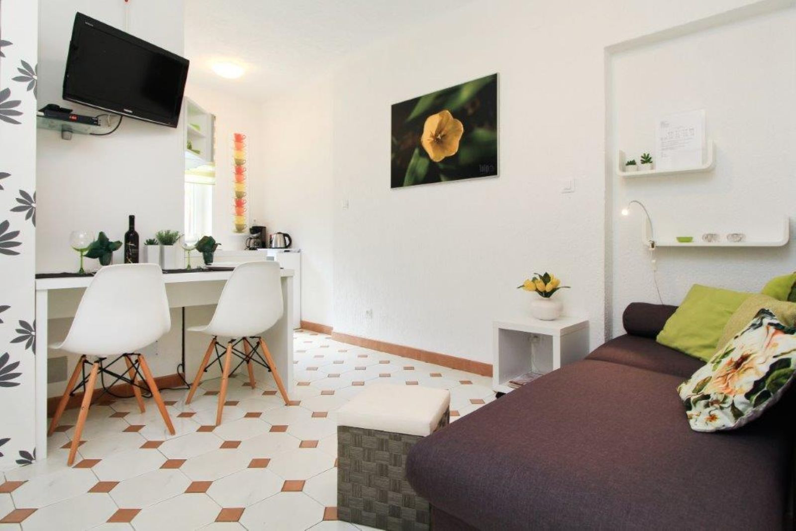 Das Apartment verfügt über ein komfortables Schlafzimmer mit einem Queensize-Bett und einem zusätzlichen Einzelbett und bietet ausreichend Schlafplatz für bis zu drei Gäste. In der gut ausgestatteten Küche mit Kühlschrank, Waschmaschine und den wichtigsten Küchenutensilien können Sie während Ihres Aufenthalts köstliche Mahlzeiten zubereiten. Der Wohnbereich ist mit einem Fernseher ausgestattet, der sowohl Satelliten- als auch lokale Kanäle zu Ihrer Unterhaltung bietet.