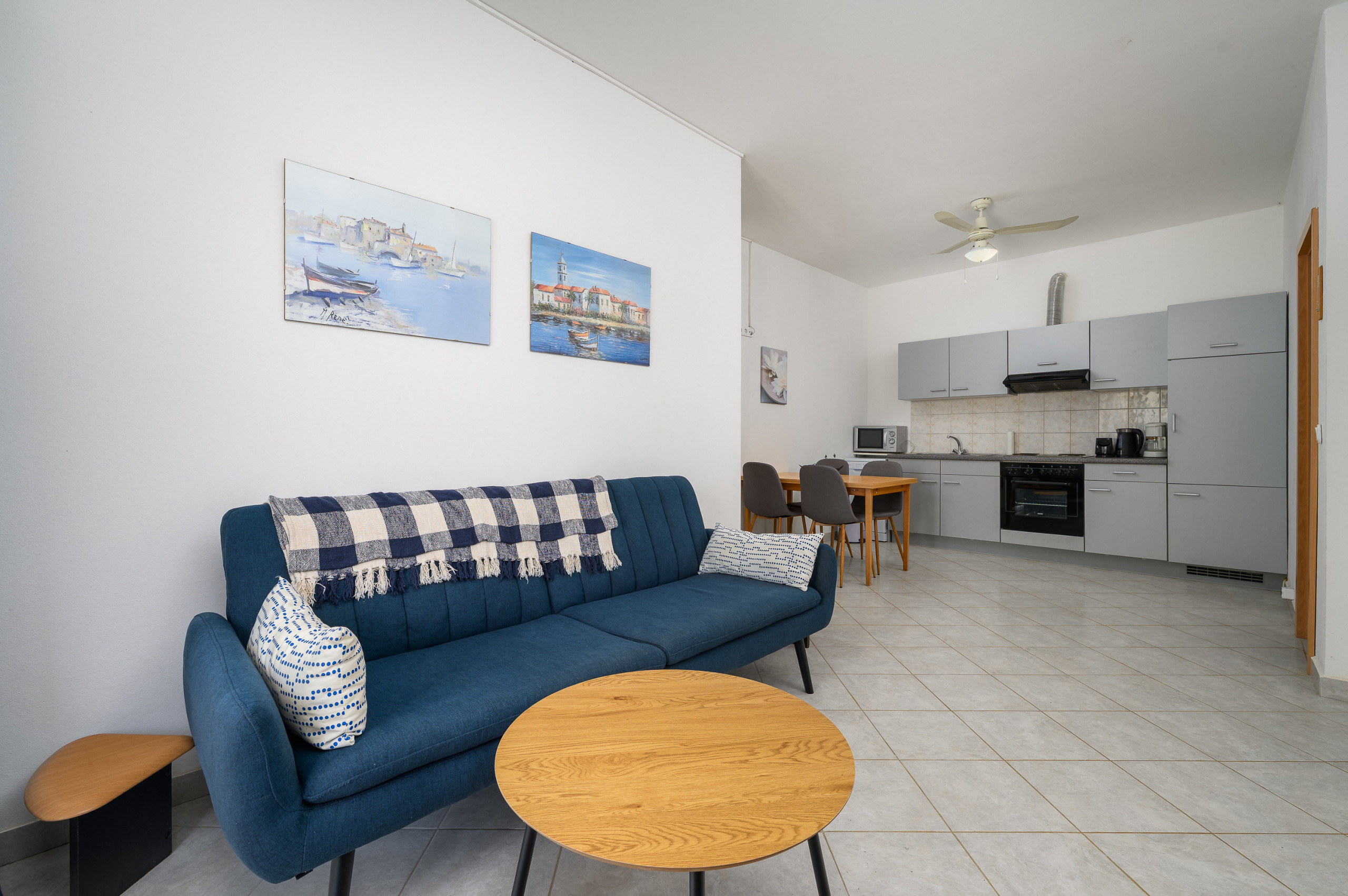 Panous 3 ist ein charmantes, familienfreundliches Apartment in Stranici kod Nove Vasi, ideal für Paare und kleine Familien, die einen ruhigen Rückzugsort suchen. Dieses gemütliche Apartment bietet komfortable Unterkunft für bis zu vier Personen und besticht durch eine durchdachte Raumaufteilung mit einem Schlafzimmer und einem Schlafsofa im Wohnbereich.