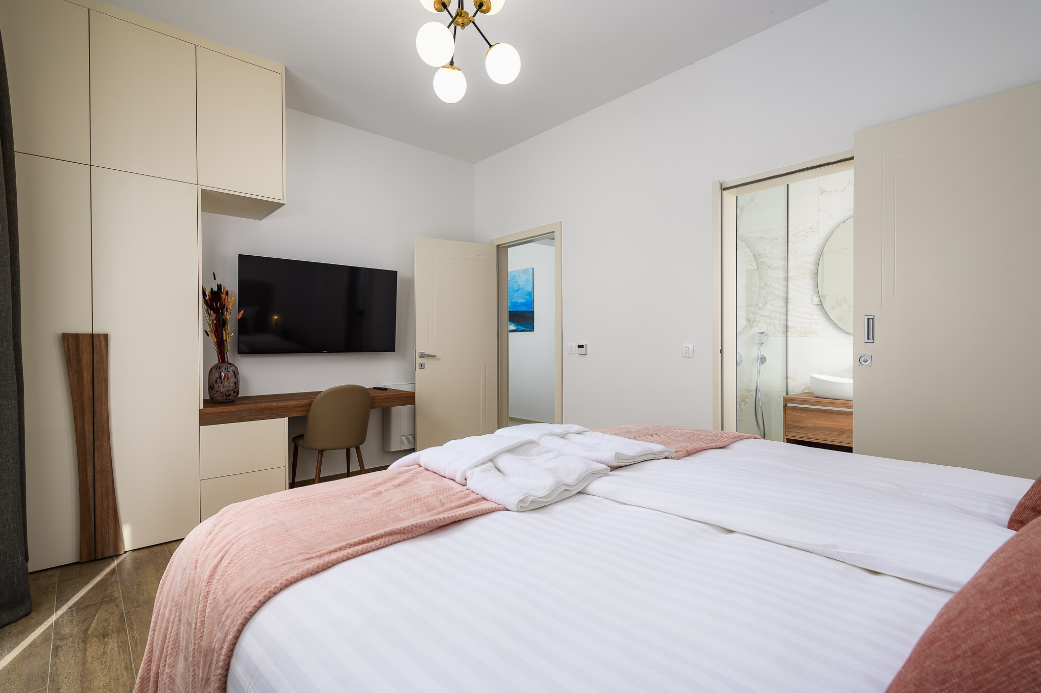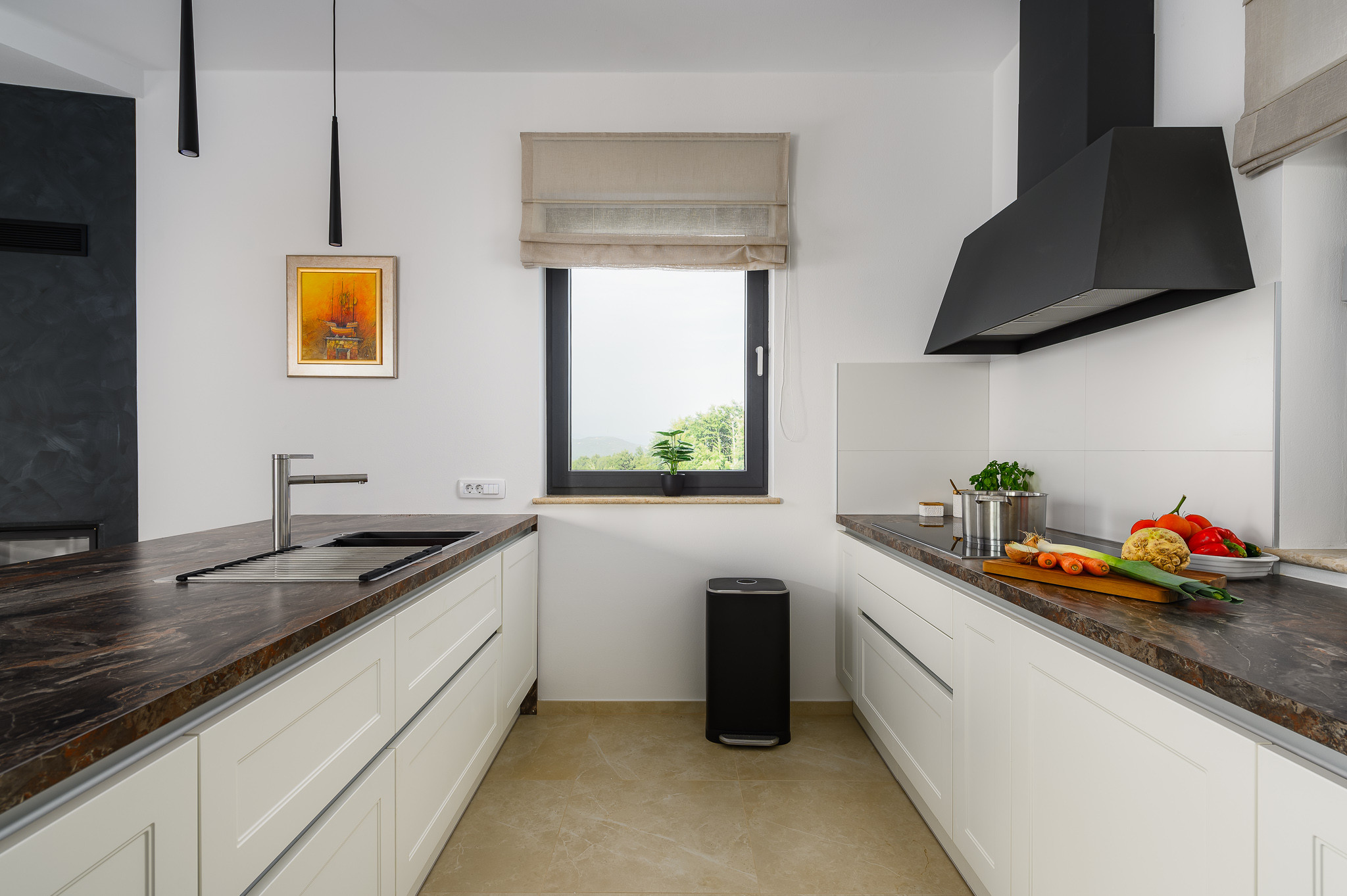 Dieses exquisite Luxus-Ferienhaus in der Nähe von Bajkini verfügt über vier elegante Schlafzimmer mit Doppelbetten, jeweils mit eigenem en-suite-Bad, eine geräumige Küche und einen Essbereich. Das gemütliche Wohnzimmer sowie die gesamte Villa sind von erdigen Farben und der Schönheit der Natur inspiriert, um eine einzigartig entspannende Atmosphäre zu schaffen - in Verbindung mit der Natur.