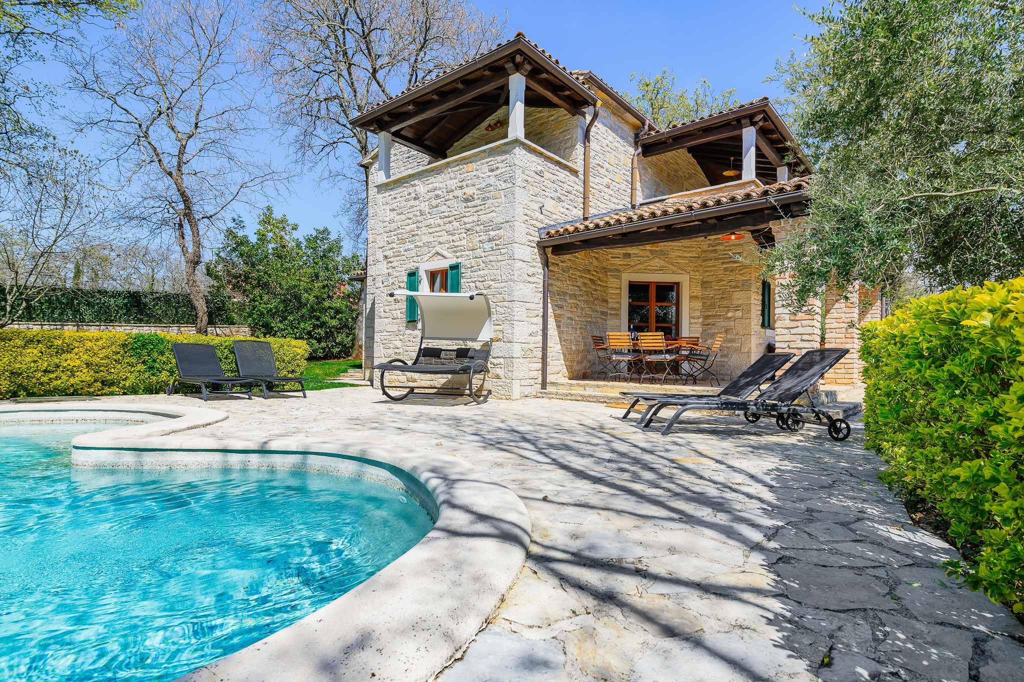 Die Mischung aus rustikalem Charme und modernen Annehmlichkeiten in Kombination mit der idyllischen Umgebung macht sie zur perfekten Wahl für einen ruhigen Urlaub. Ob beim Entspannen am Pool, Essen im Freien oder Erkunden der atemberaubenden istrischen Landschaft, Gäste werden in diesem exquisiten Anwesen mit Sicherheit bleibende Erinnerungen schaffen.
