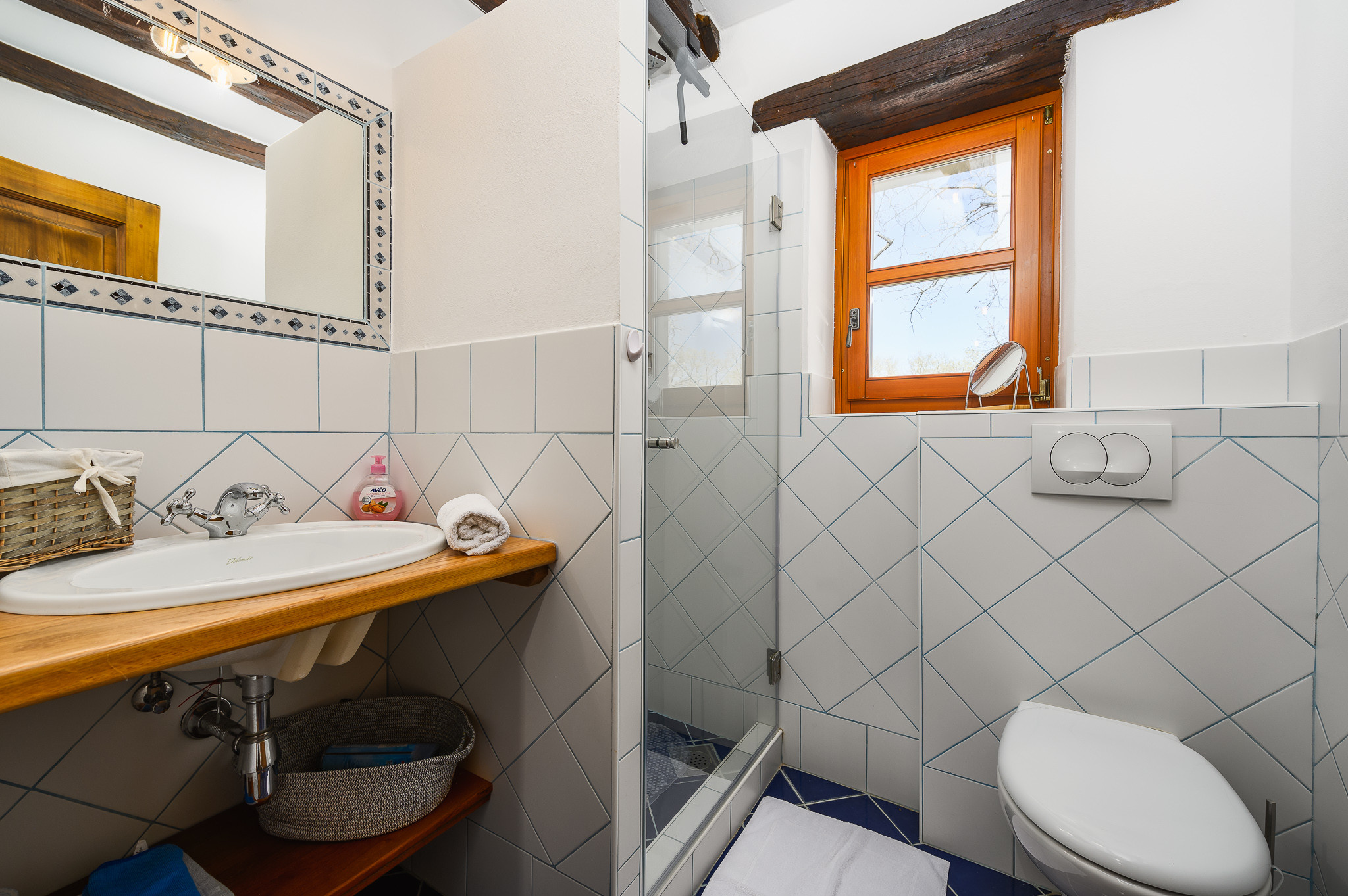 Ein zweites Badezimmer mit Dusche befindet sich praktischerweise in der Nähe des anderen Schlafzimmers.
