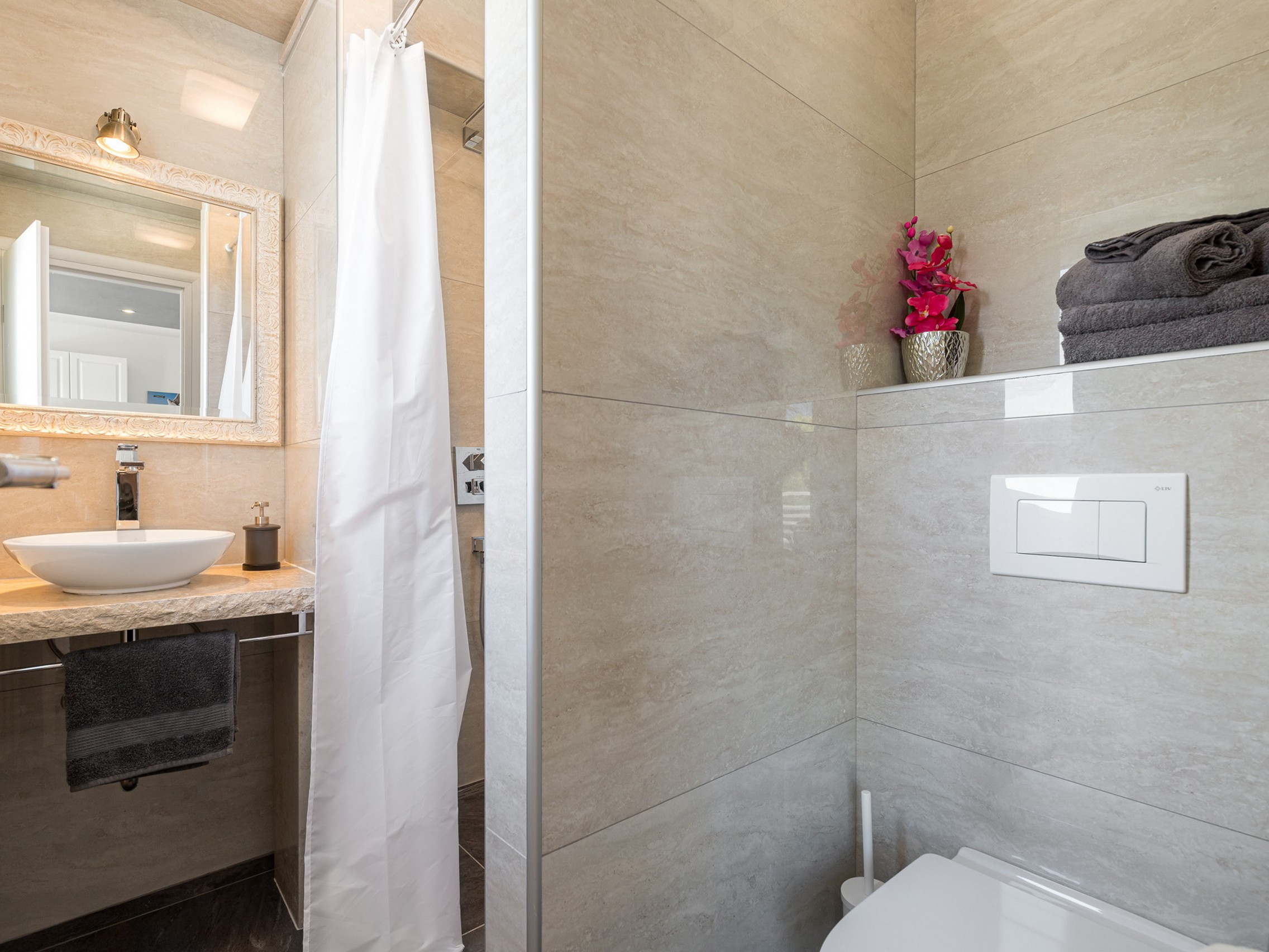 Im ersten Stock befinden sich vier wunderschön gestaltete Schlafzimmer, jedes mit eigener Dusche.