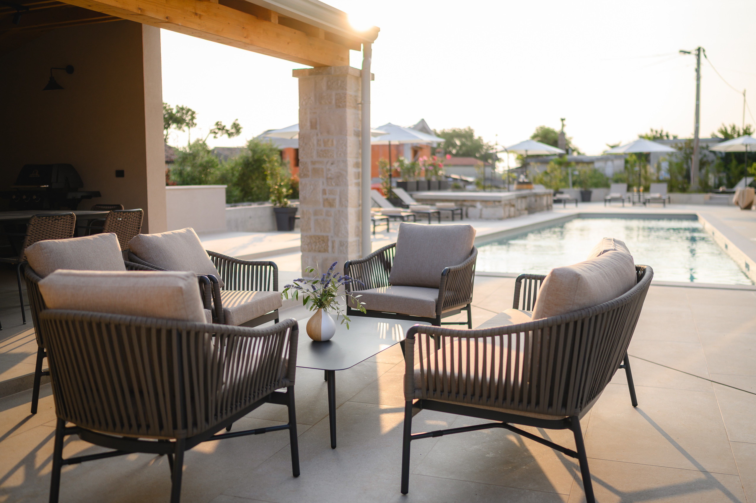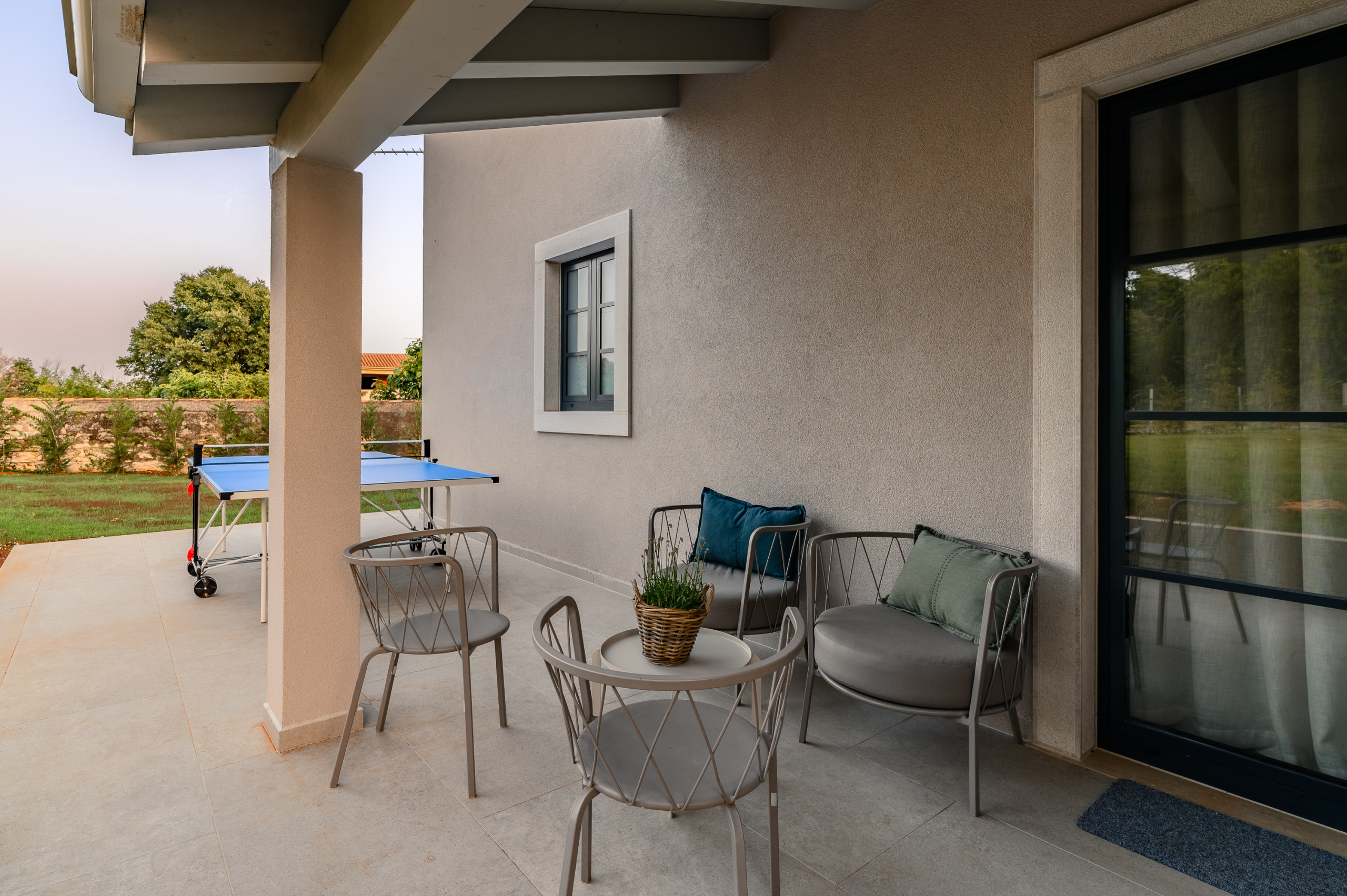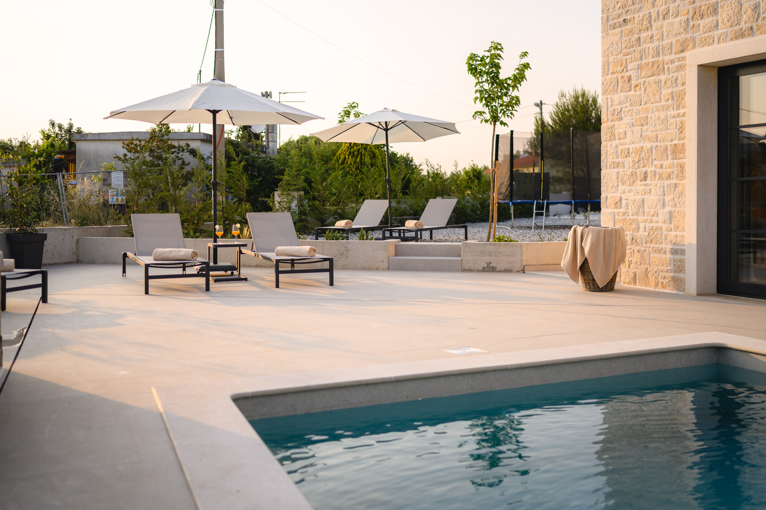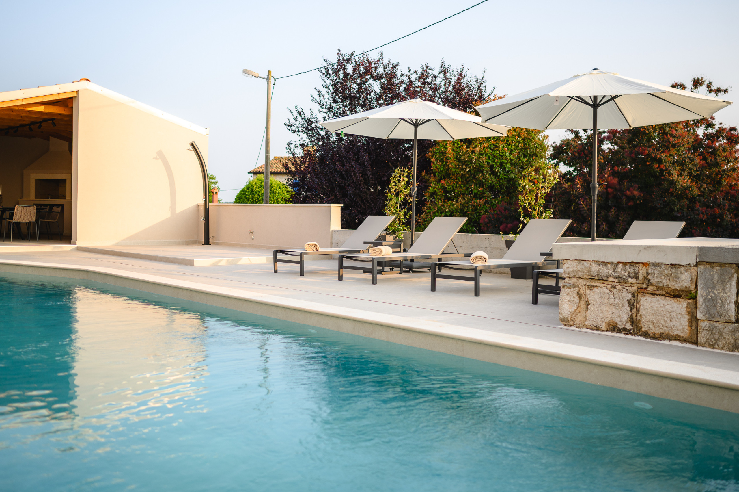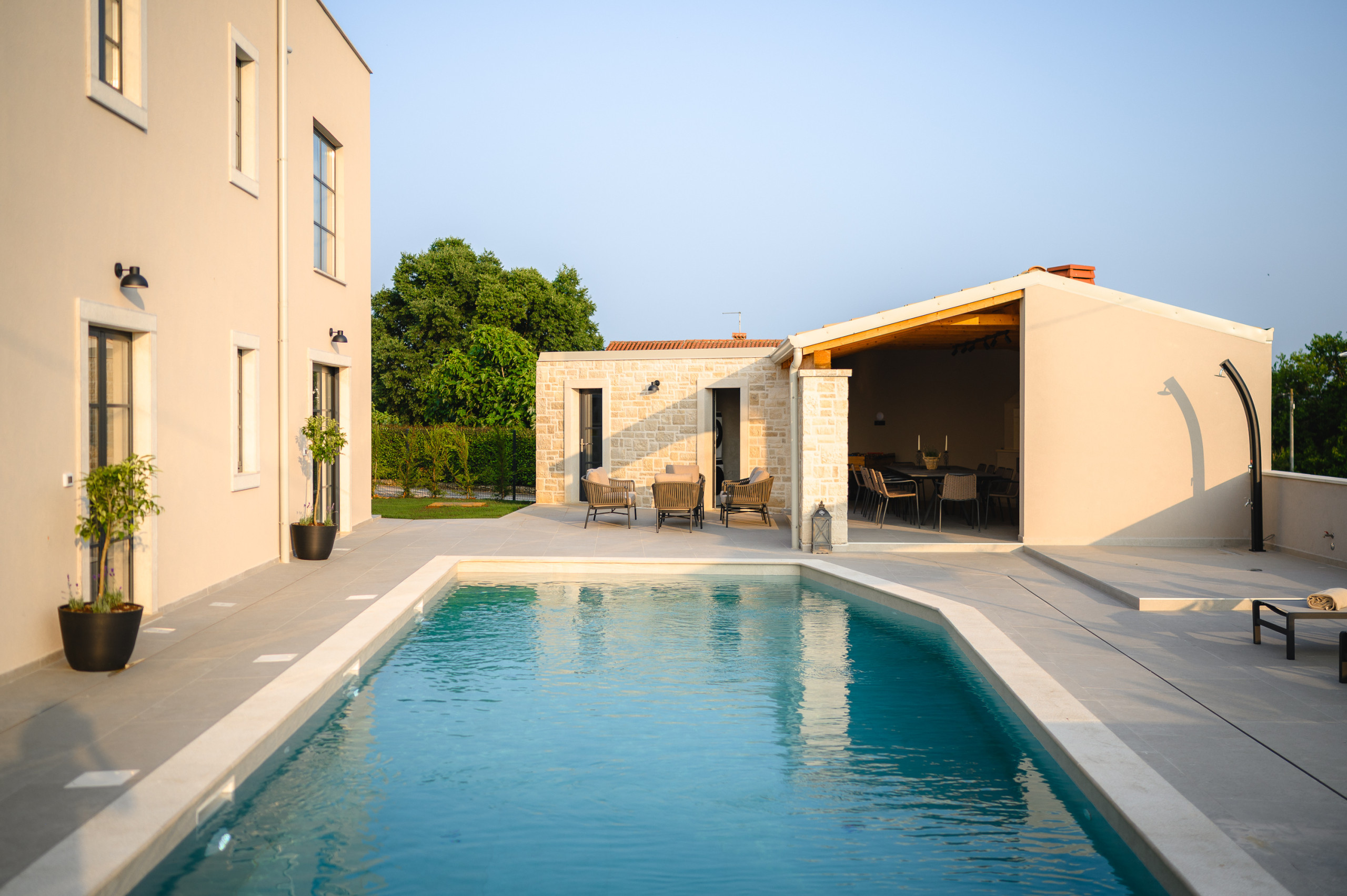 Das Highlight der Villa Madora ist der private 16 x 4 Meter große Pool, ideal zum Entspannen und Genießen der sonnigen istrischen Tage. Auch die Außenbereiche sind beeindruckend: Ein eingezäuntes Grundstück, ein Garten, Gartenmöbel, ein Grillplatz, ein Balkon und eine 30 Quadratmeter große Terrasse laden zum Essen und gemütlichen Beisammensein im Freien ein.