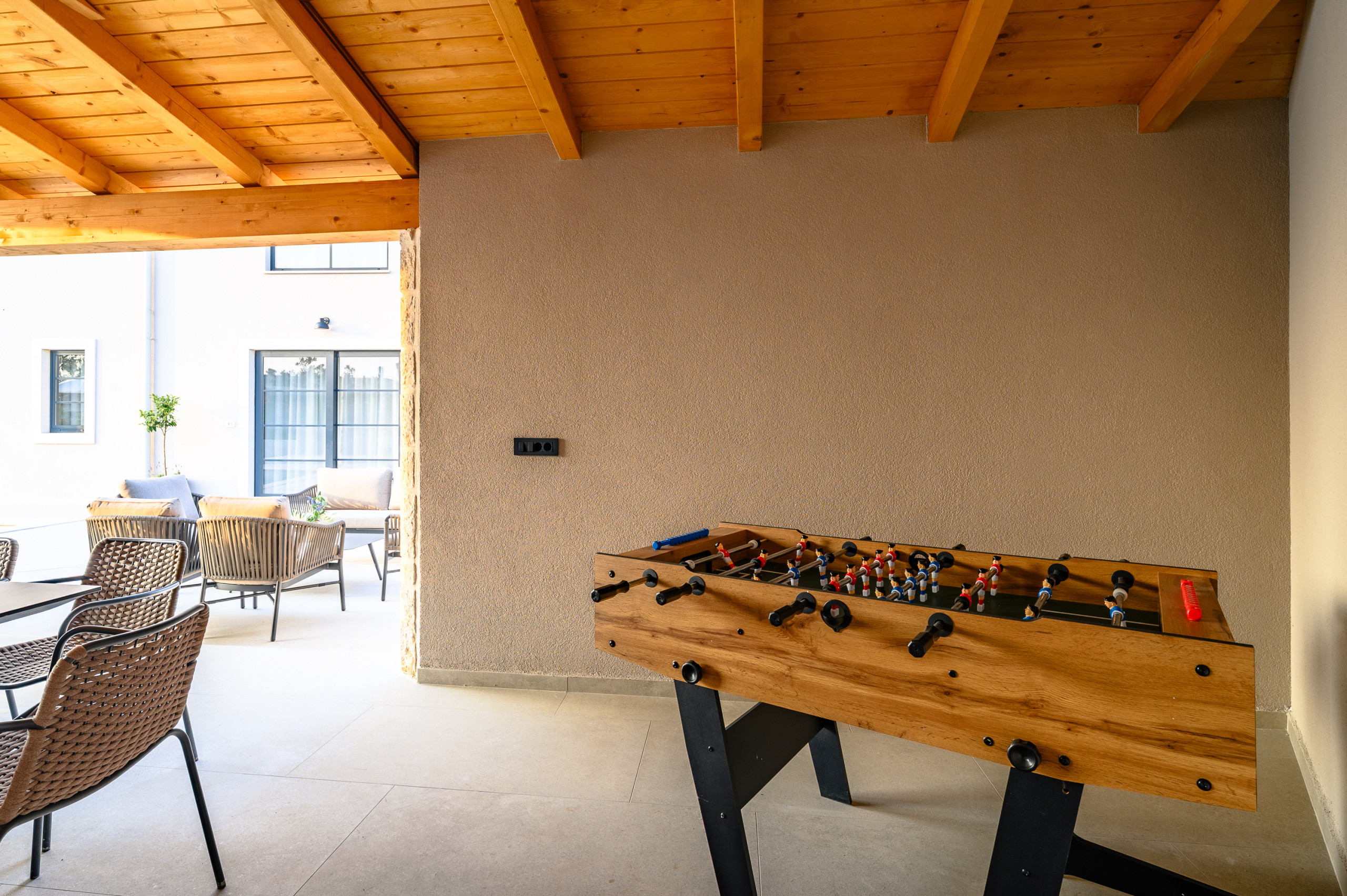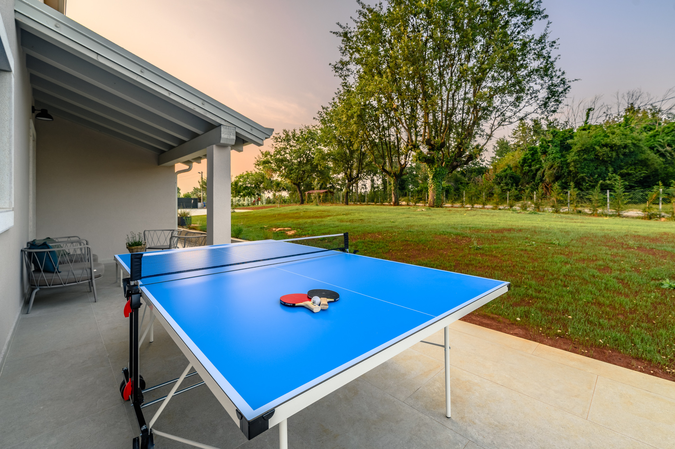 Die Villa ist kinderfreundlich und bietet ein Trampolin, Tischtennis und Tischfußball.