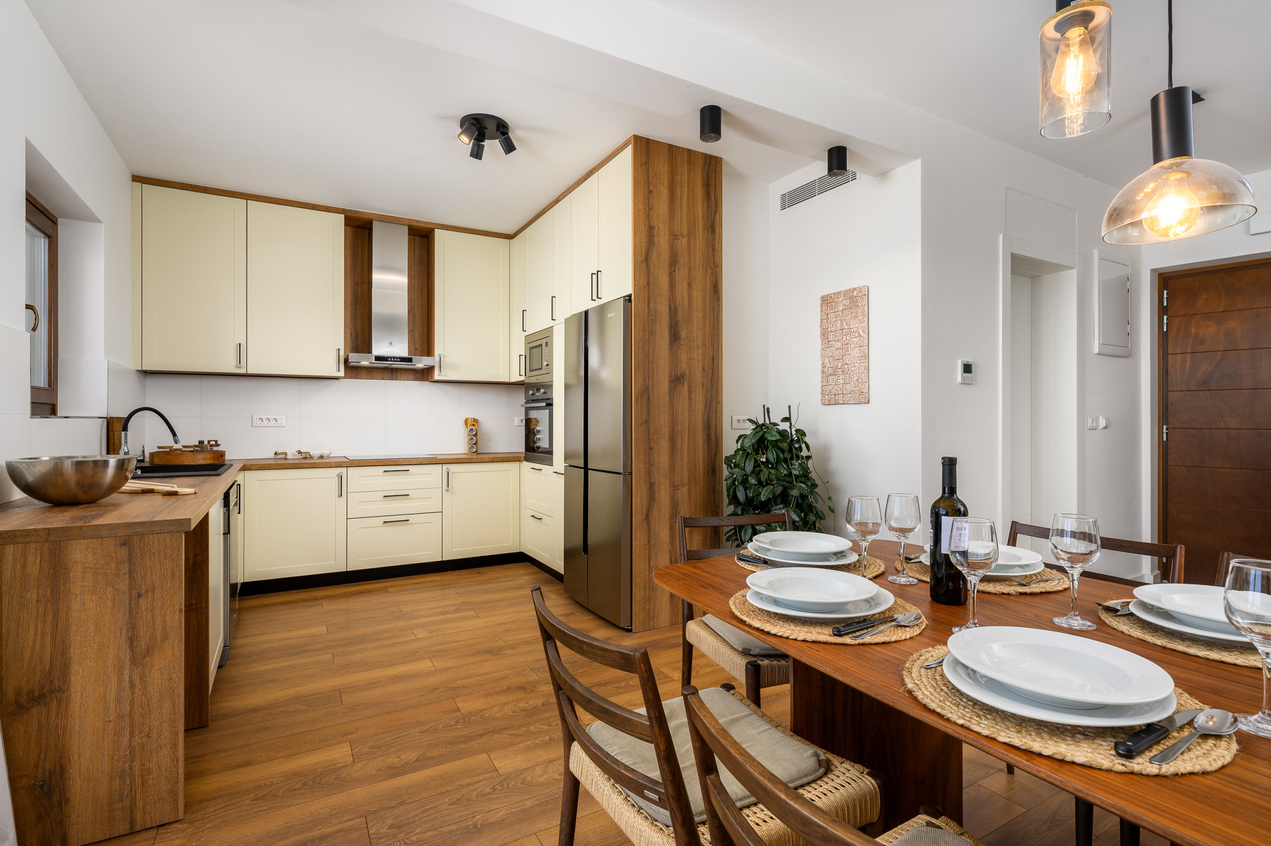 Im Inneren verfügt die Villa über vier geräumige Schlafzimmer und drei stilvolle Badezimmer, die ausreichend Platz für Familien oder Gruppen bieten. Der offene Wohn- und Essbereich ist auf Komfort und Eleganz ausgelegt und verbindet sich nahtlos mit einer voll ausgestatteten Küche, was das Genießen selbstgekochter Mahlzeiten erleichtert.