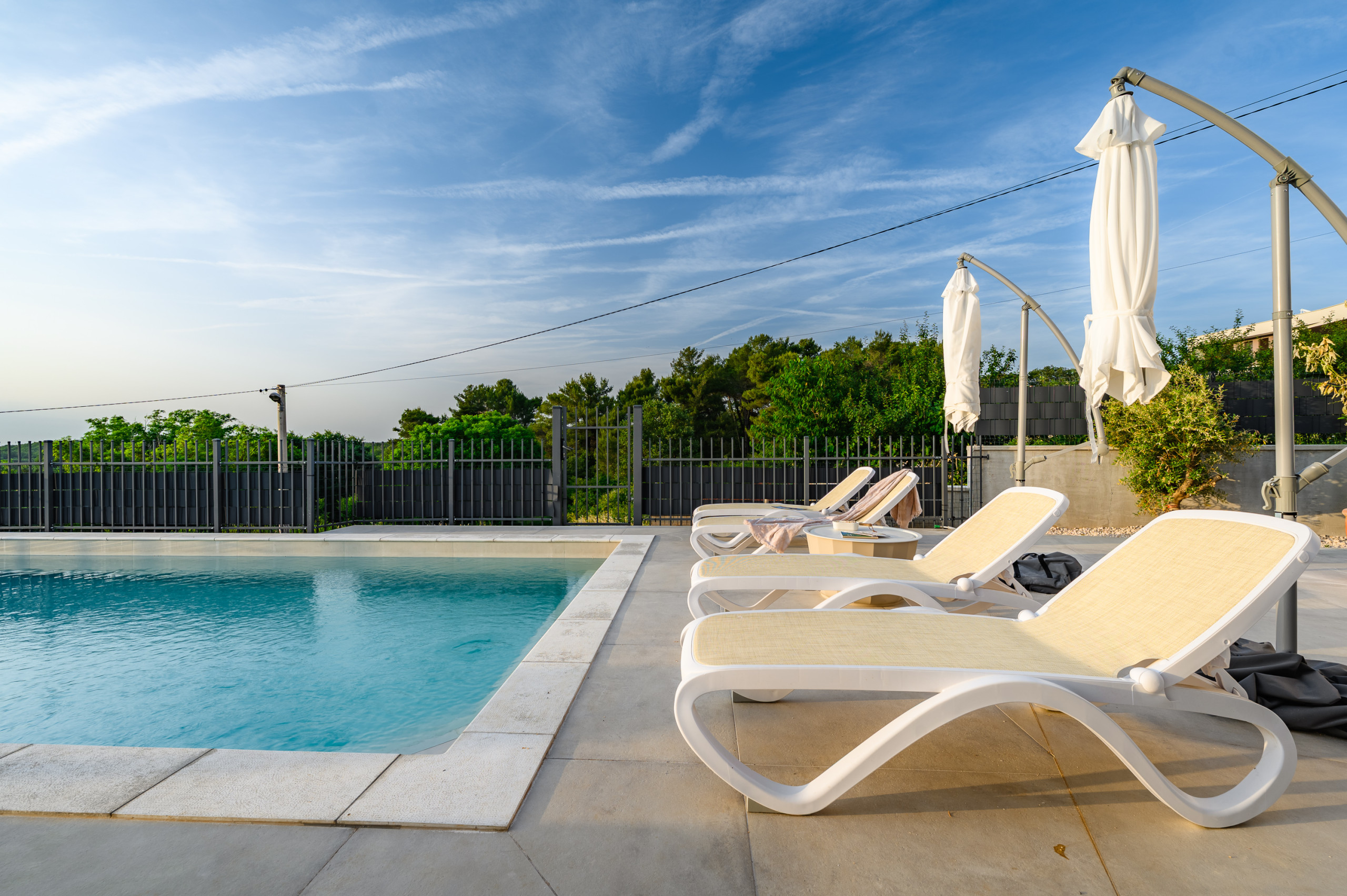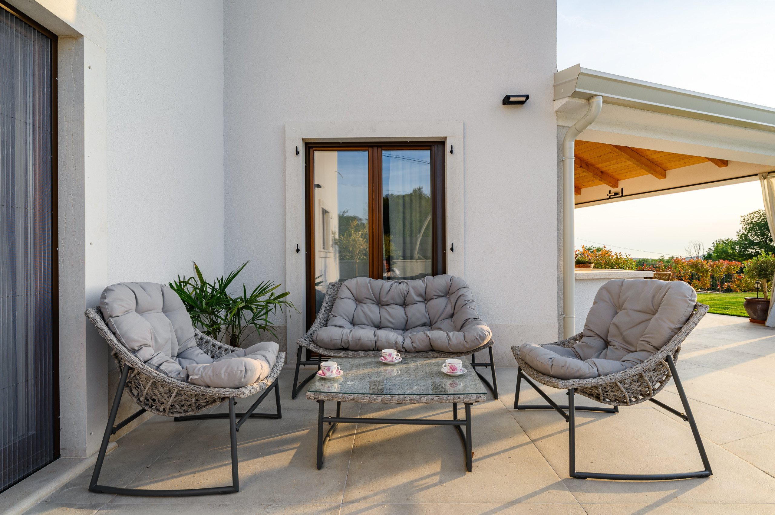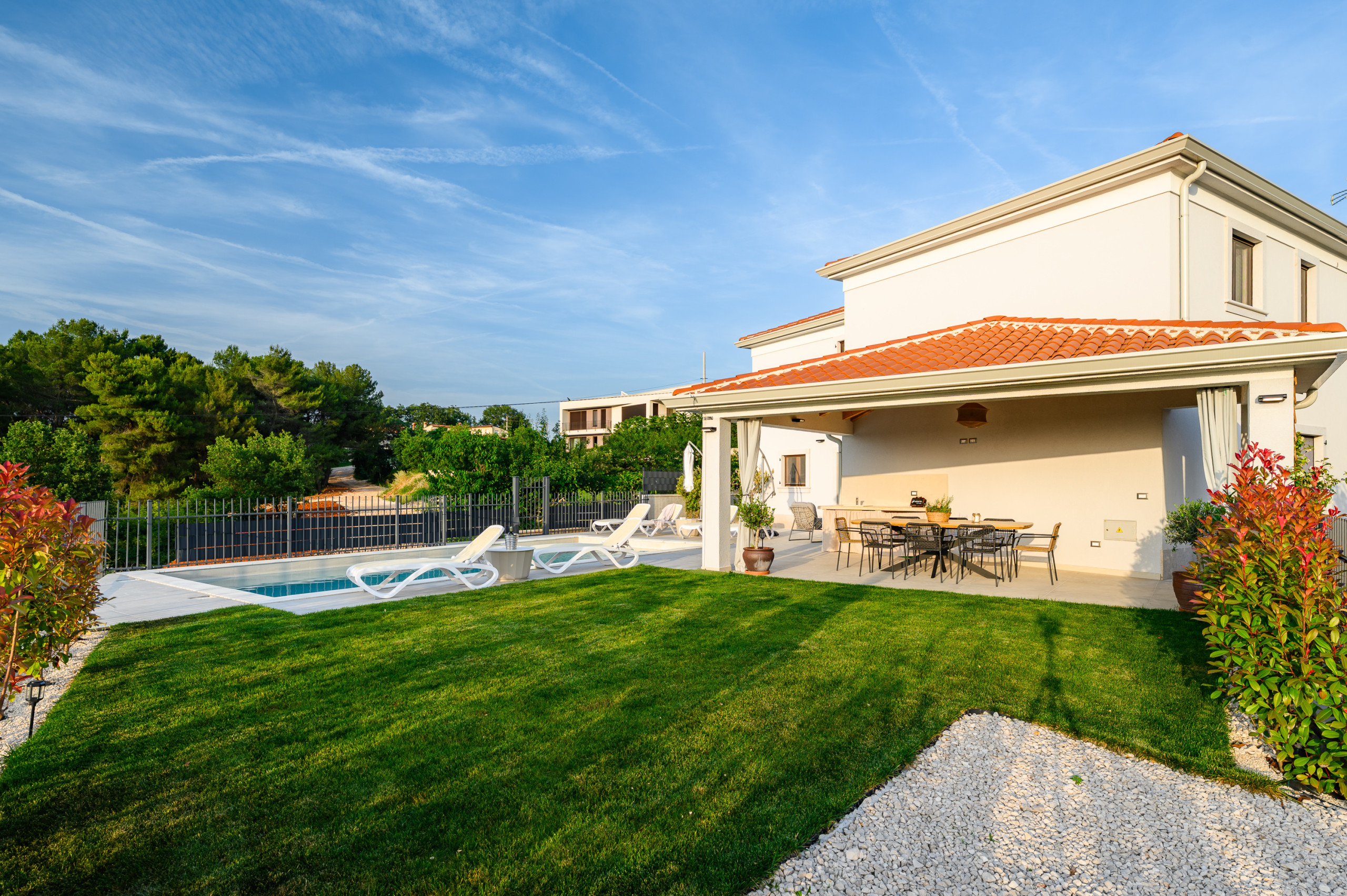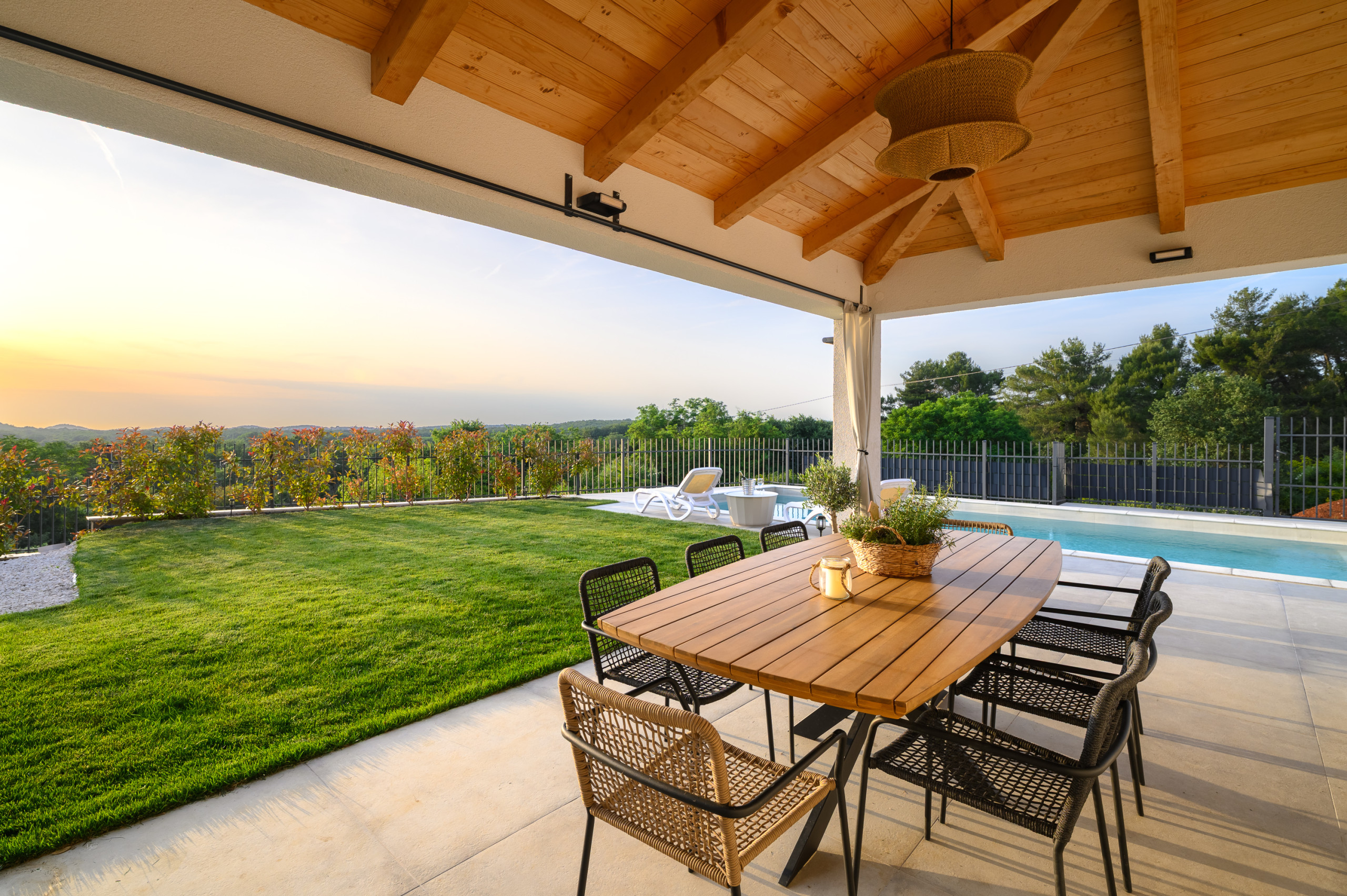 Der große, private Pool und der üppig angelegte Garten sind perfekt, um sich inmitten der natürlichen Schönheit Istriens zu entspannen. Die überdachte Terrasse lädt ein, Mahlzeiten im Freien zu genießen und friedvolle Momente in der frischen Mittelmeerluft zu erleben.