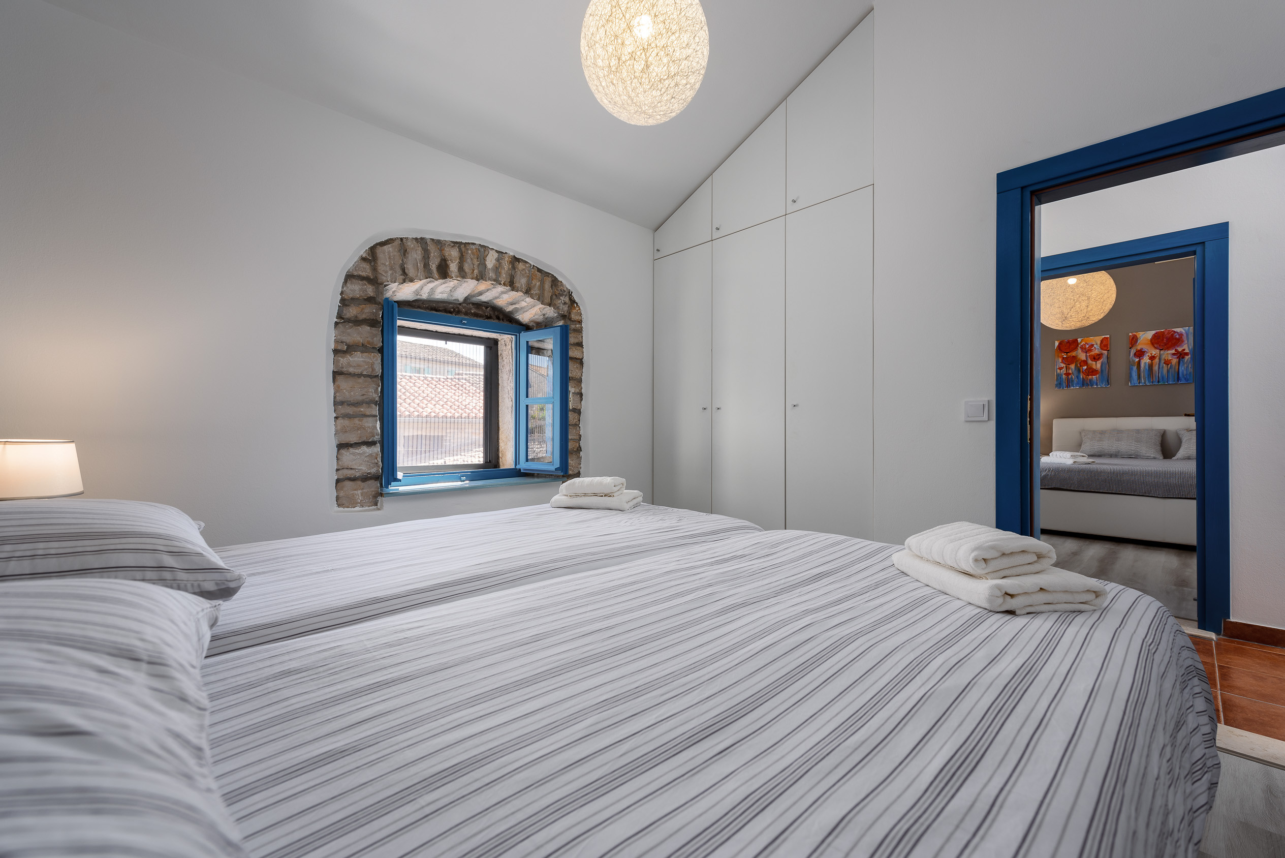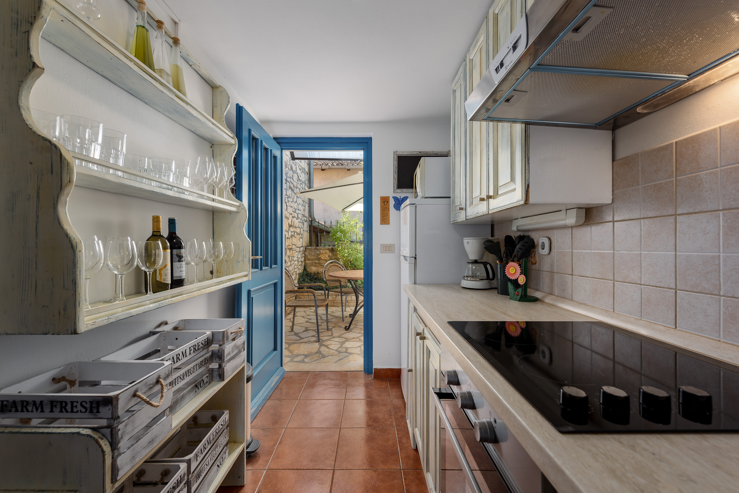 Das Haus besteht aus einem Wohn- und Essbereich, einer Küche und einer kleinen Toilette mit Waschmaschine im Erdgeschoss und zwei Schlafzimmern, von denen eines groß mit Doppelbett und das andere kleiner mit zwei Einzelbetten ist.