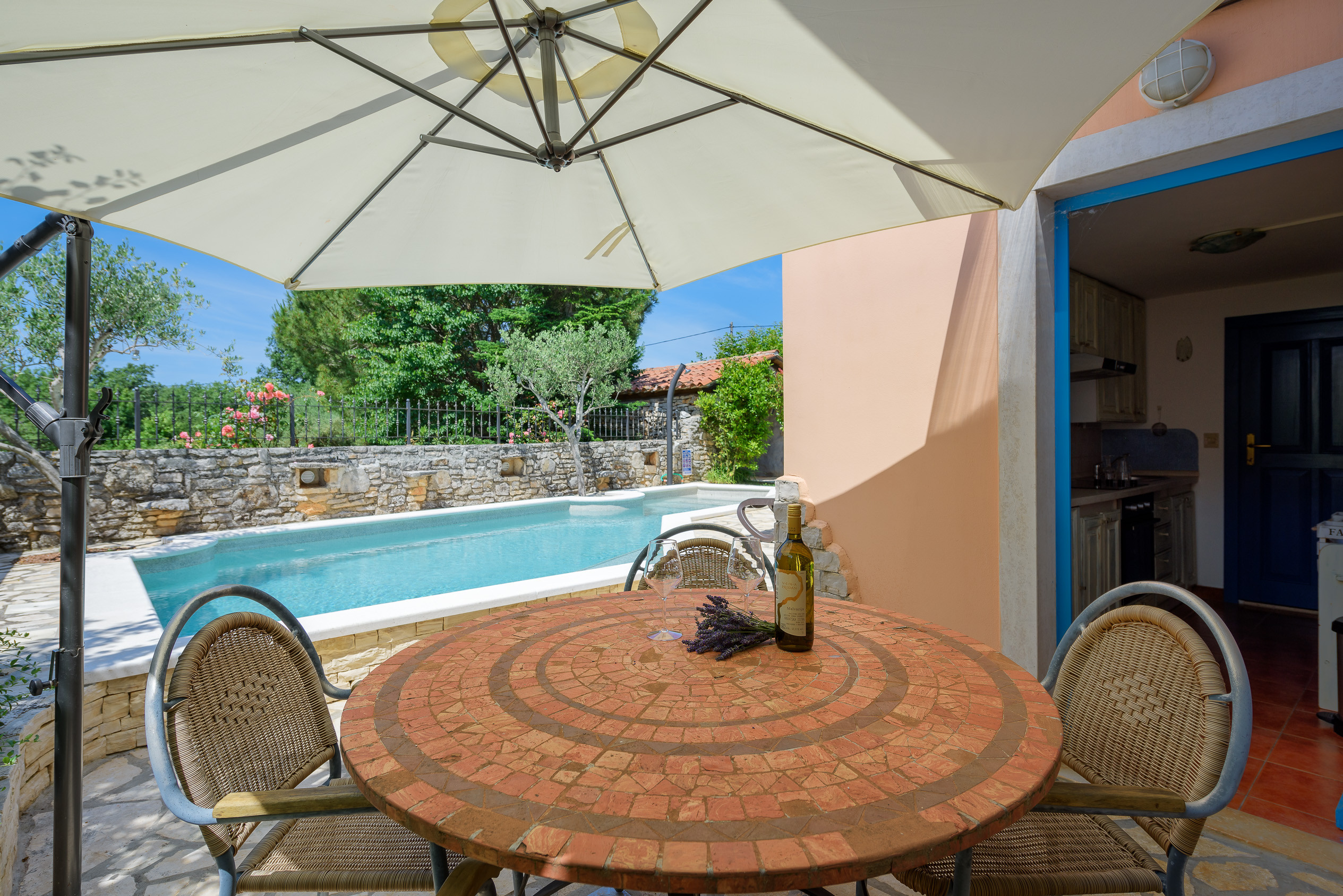 Das Haus bietet jeglichen Komfort und überzeugt mit traditionellem Charme. Das Hauptmerkmal des Hauses ist eine große überdachte Terrasse mit Grill. Es ist wie ein offenes Wohnzimmer. Der private Pool an der Rückseite des Hauses. Es gibt eine offene Garage.