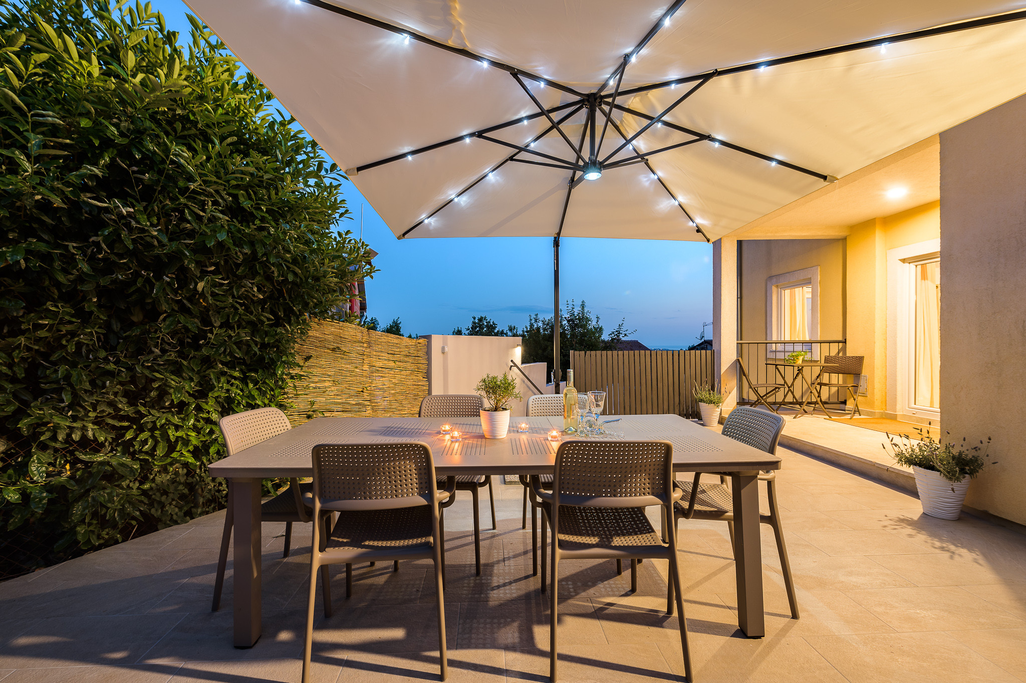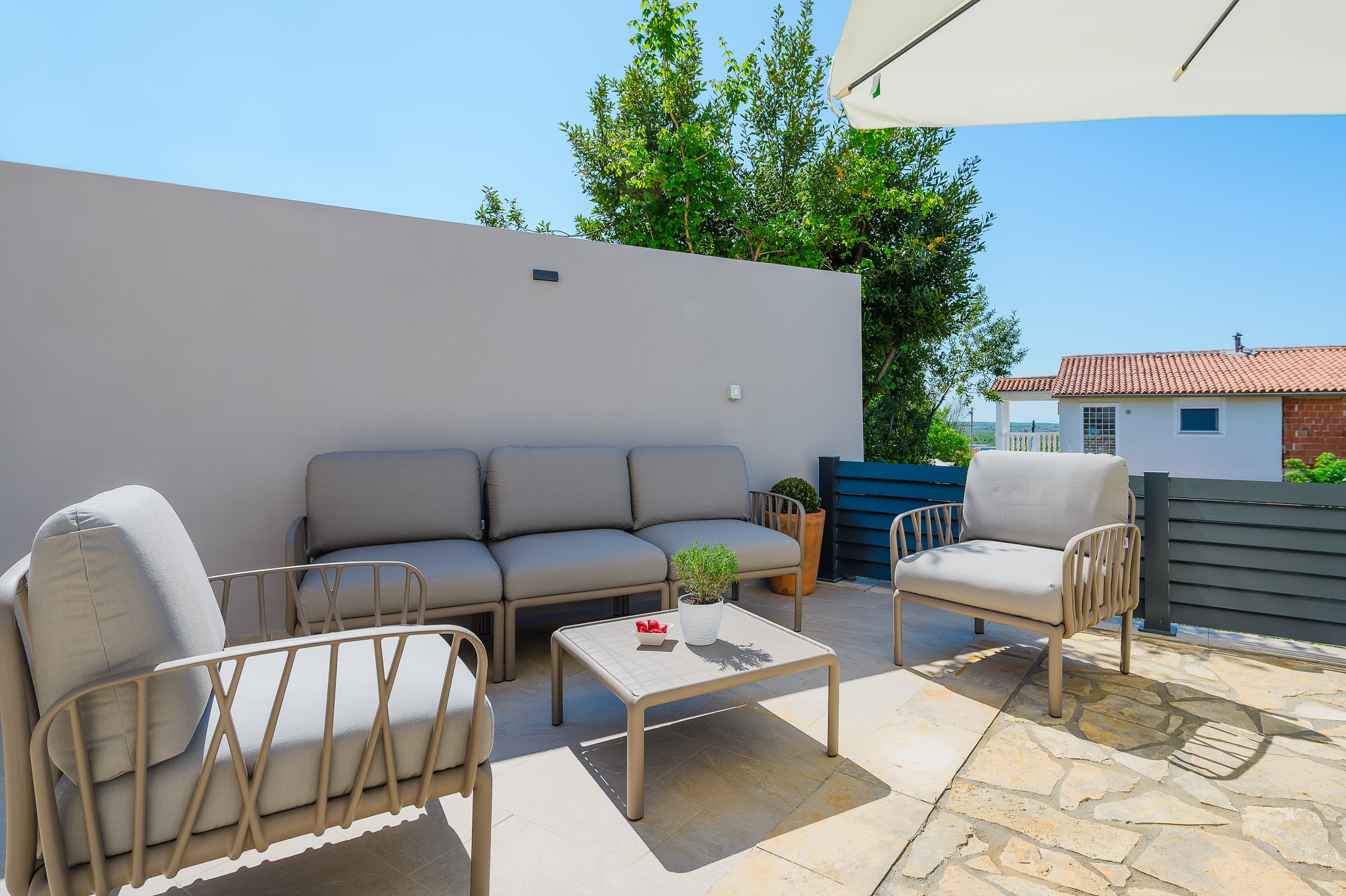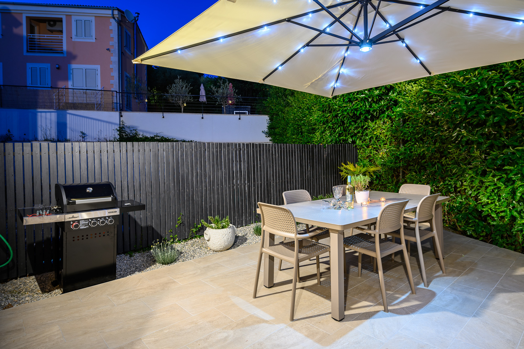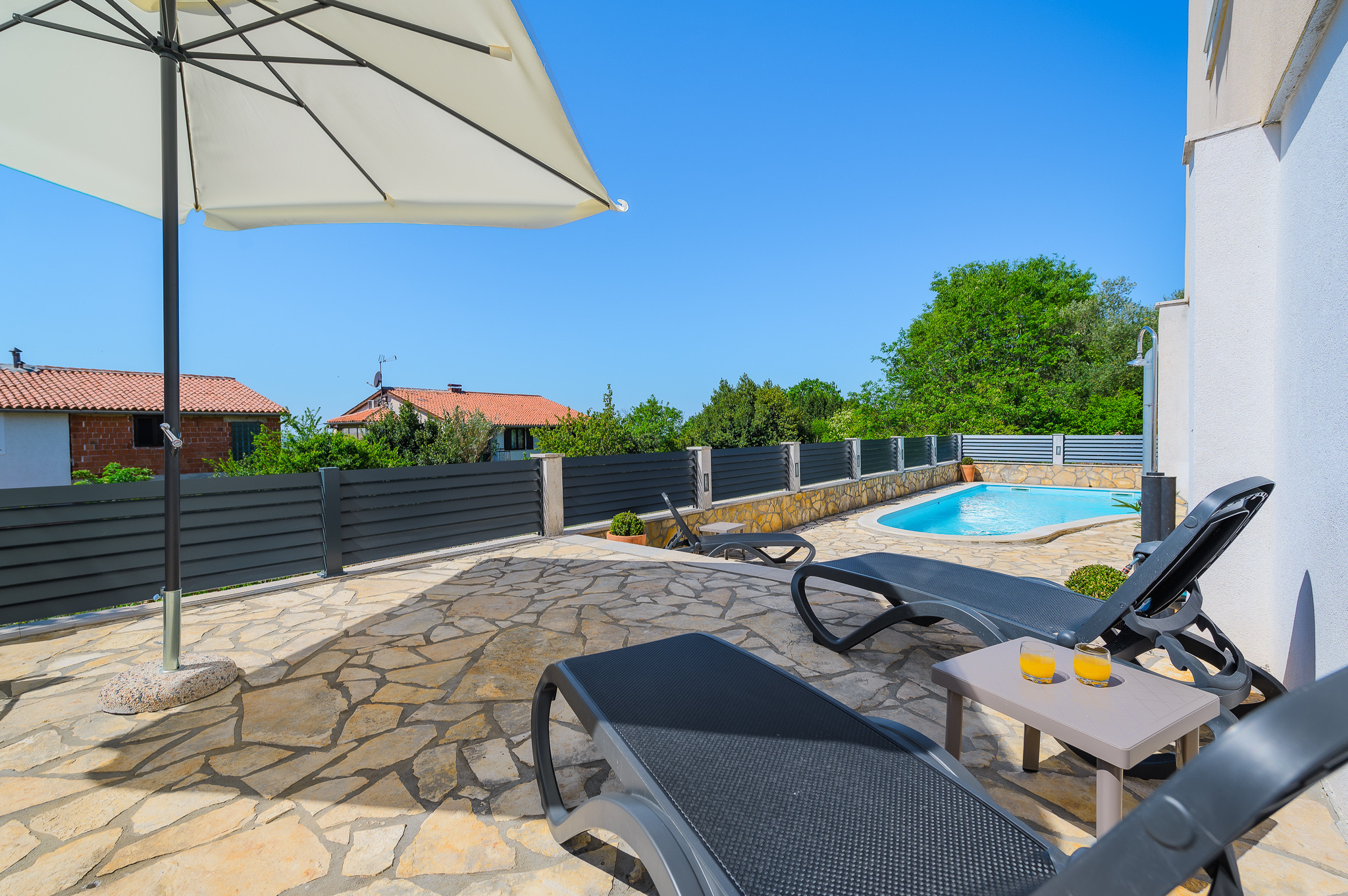 Die Villa Elisa in Istrien ist eine private Villa mit 4 Schlafzimmern, einem großen mediterranen Garten, einer gemütlichen Terrasse und einem großen Garten mit privatem Pool.