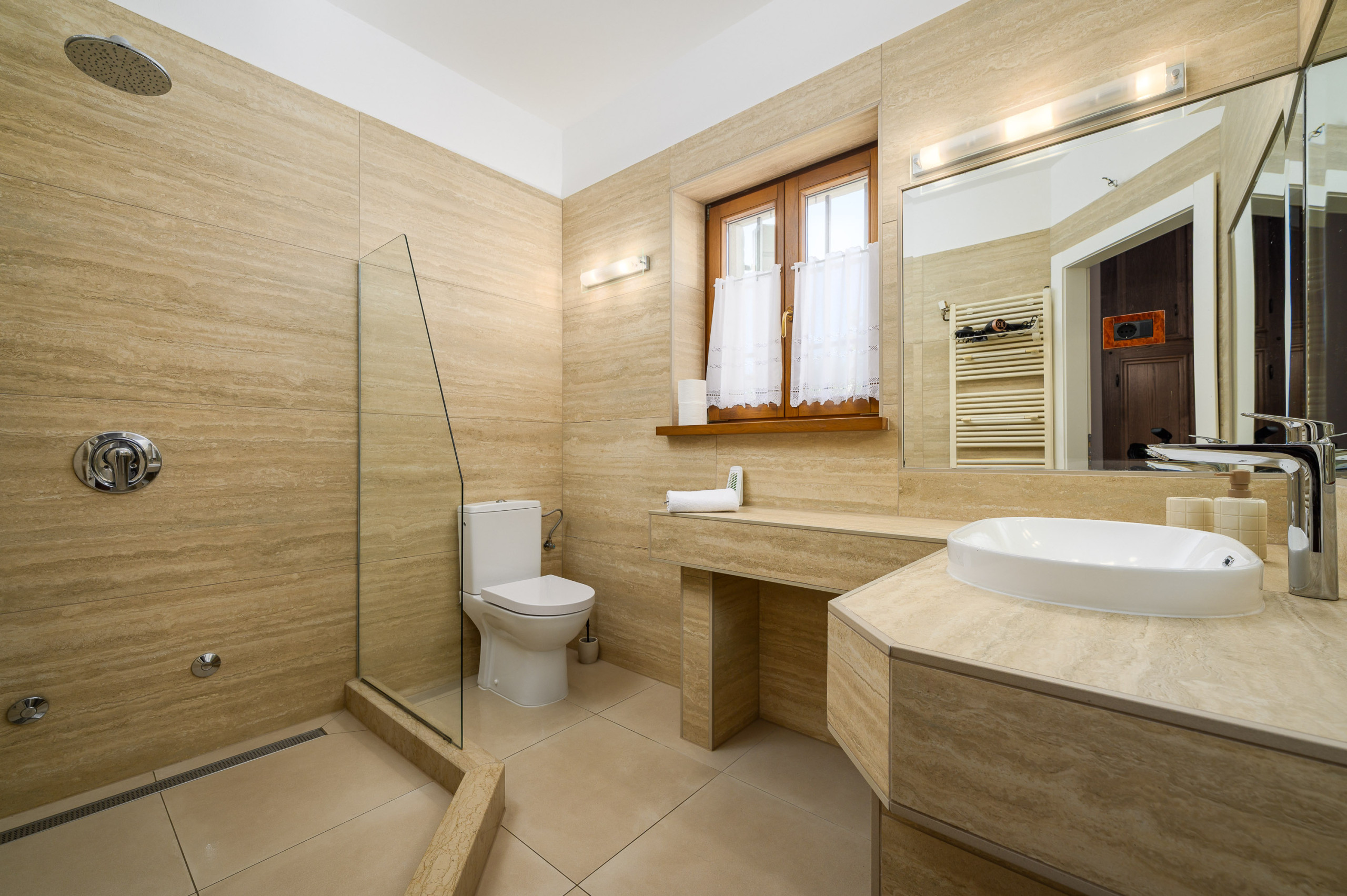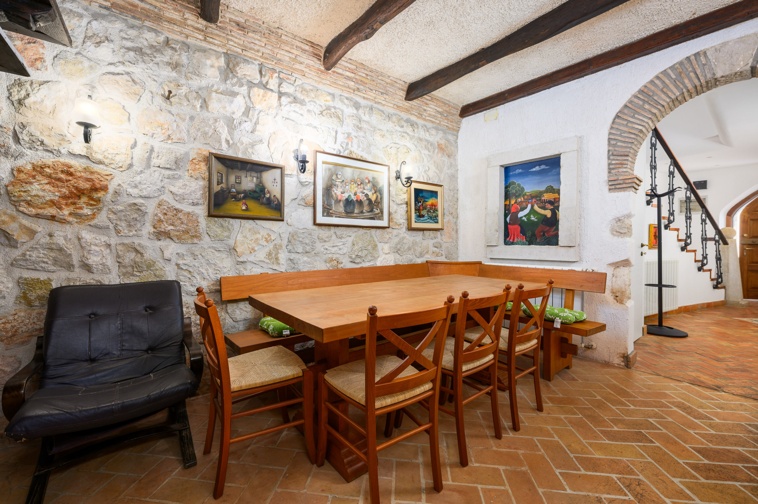 Im Erdgeschoss befinden sich zwei komfortable Schlafzimmer mit jeweils einem Doppelbett und eigenem Bad mit Dusche. Ein gemütliches Esszimmer im Tavernenstil mit Kamin und kleiner Küche lädt zu gemütlichen Abendessen ein. Ein separates Gäste-WC sorgt für zusätzlichen Komfort.