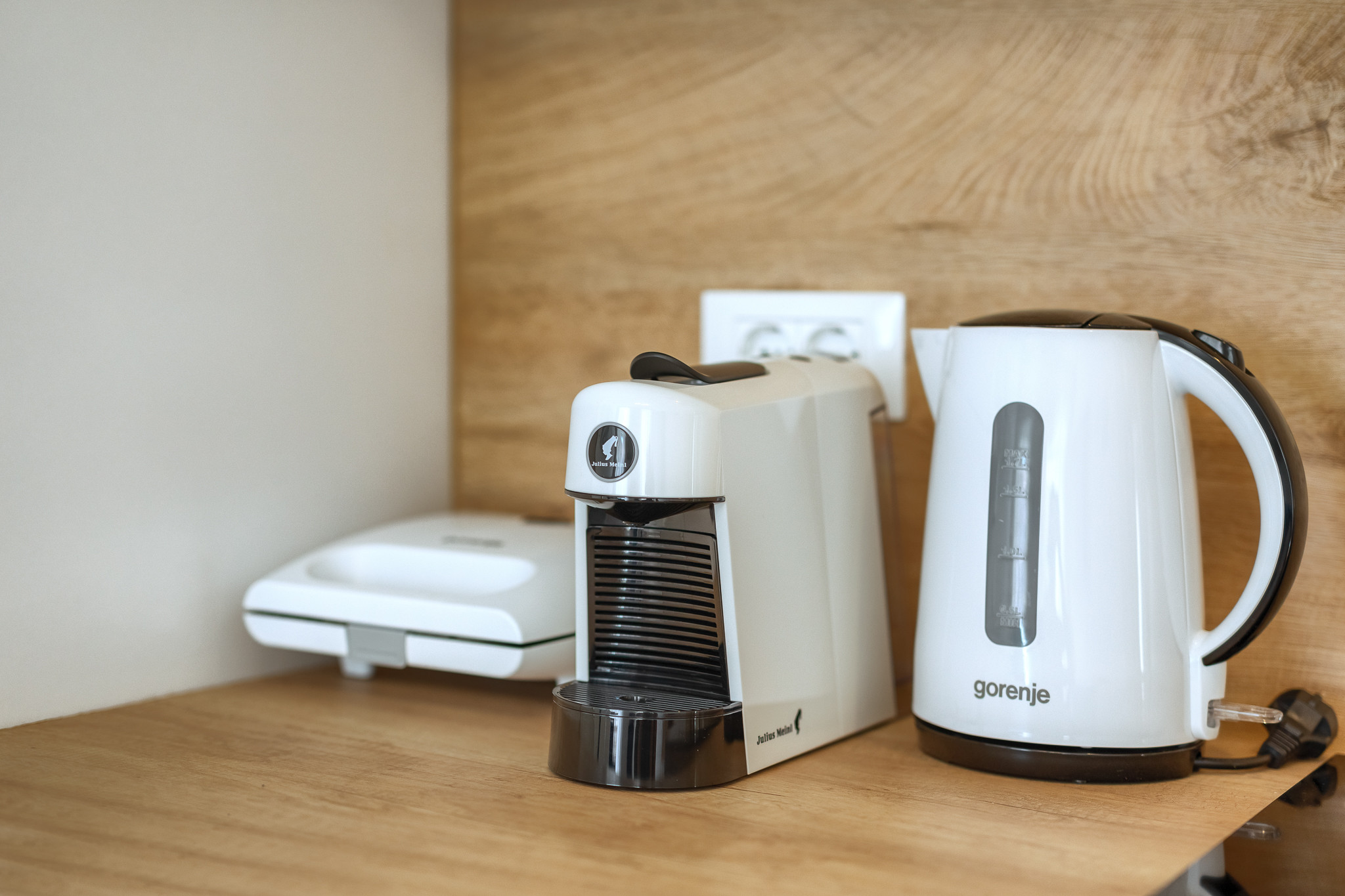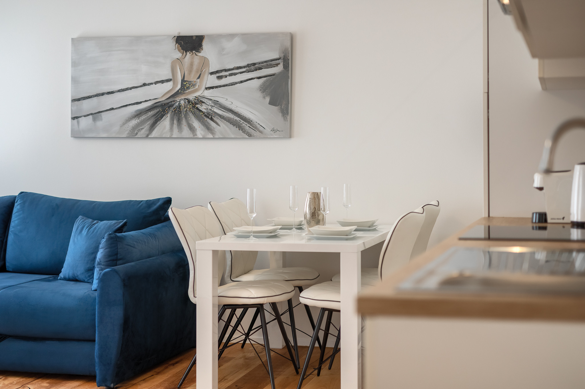L'appartamento vanta una cucina ben attrezzata, completa di frigorifero, macchina per il caffè e tutti gli utensili da cucina necessari, rendendo facile preparare deliziosi pasti e trascorrere del tempo di qualità insieme. La zona giorno dispone di un comodo divano letto matrimoniale, che offre ulteriore spazio per dormire per la tua festa. La camera da letto è arredata con un comodo letto king-size, che assicura un sonno ristoratore.