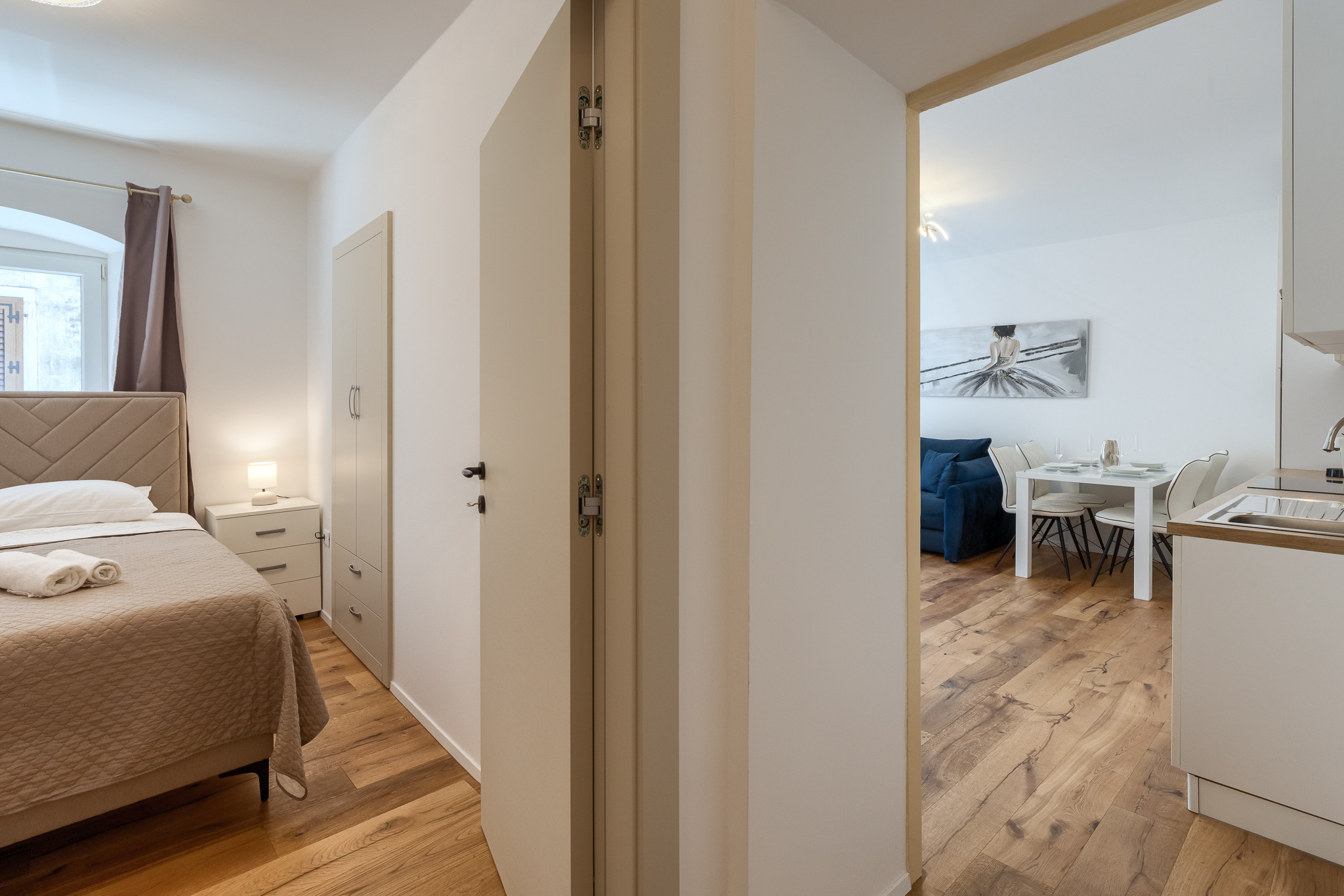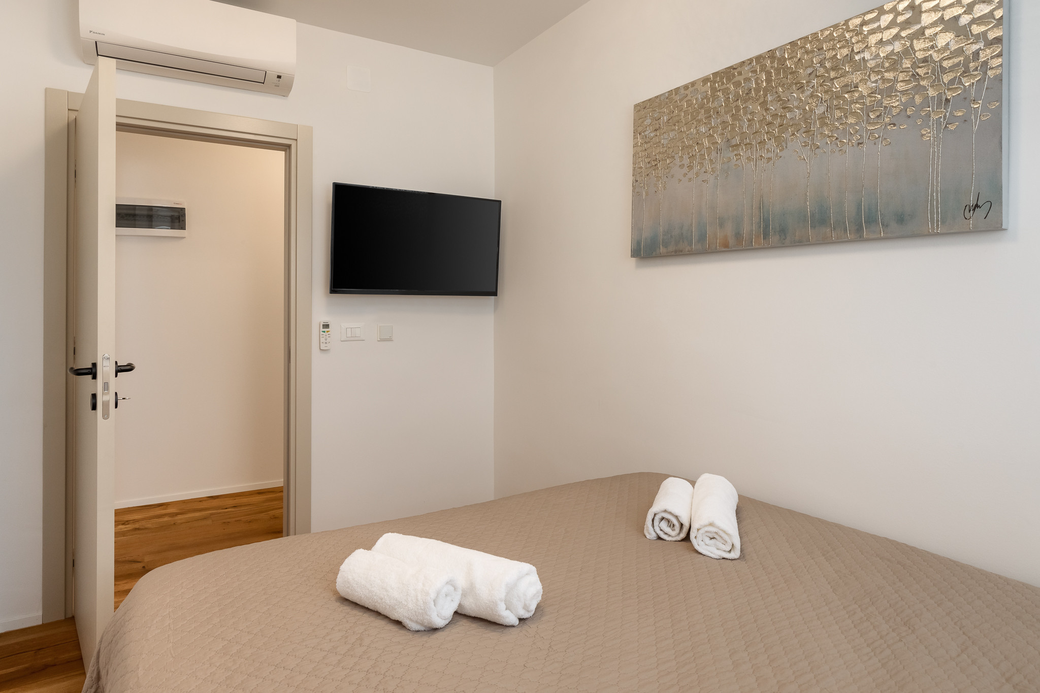 Appartamento di lusso nel centro storico di Parenzo, situato nella strada principale Decumanus. Pieno di fascino e completamente ristrutturato; è composto da due camere matrimoniali, soggiorno, pranzo e angolo cottura e un bagno con doccia.