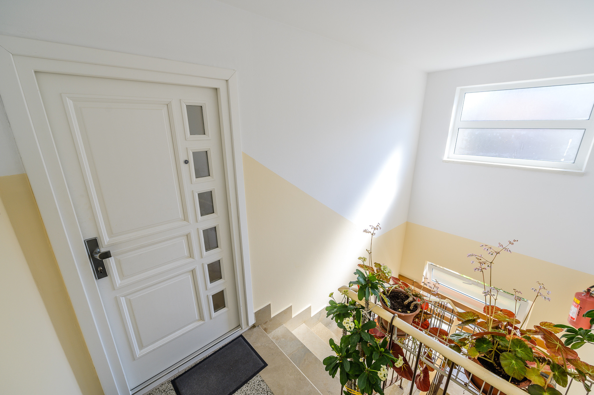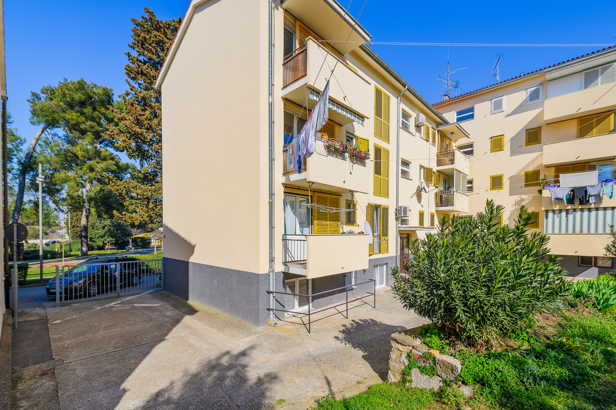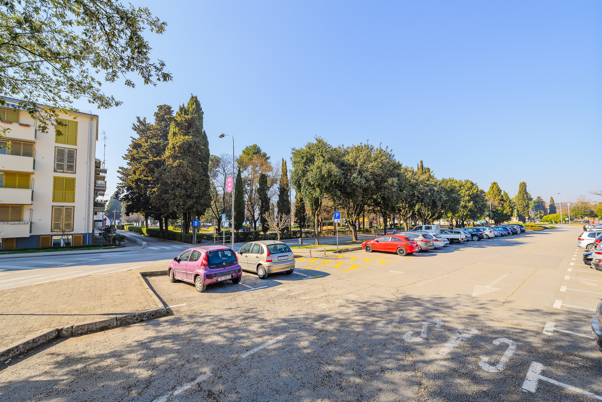 Great location, steps from very old city center. Parking nearby on a large parking lot included in the price. Nice and calm area 50m from the beach (hard to say if you can actually swim there). Thrash bins on the street are to the left, at the end of the park, in front of Konzum.