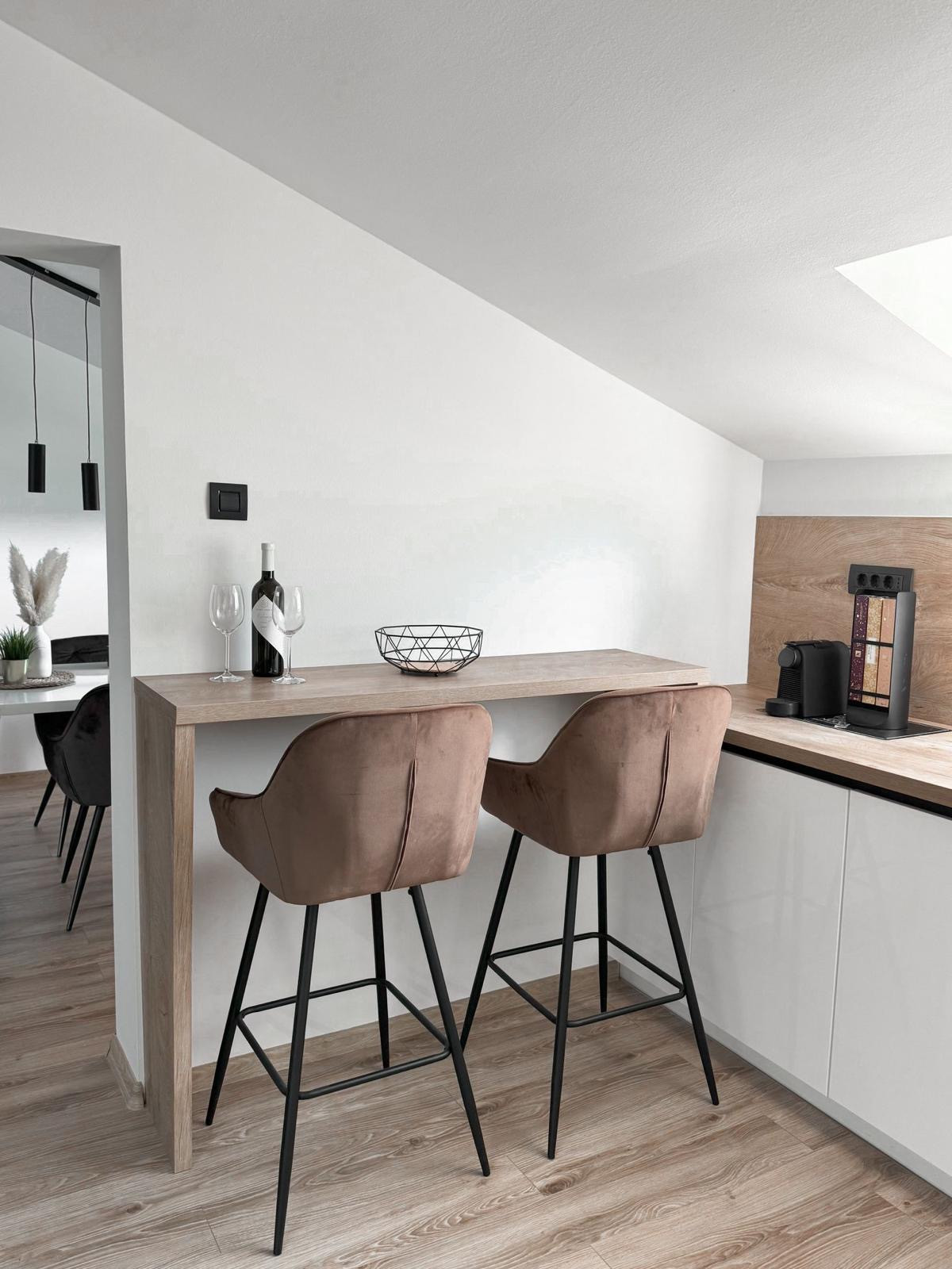 48 m² arredati con gusto e nuova costruzione, comprende 1 camera da letto con leto matrimoniale, galeria con letto 140x200.