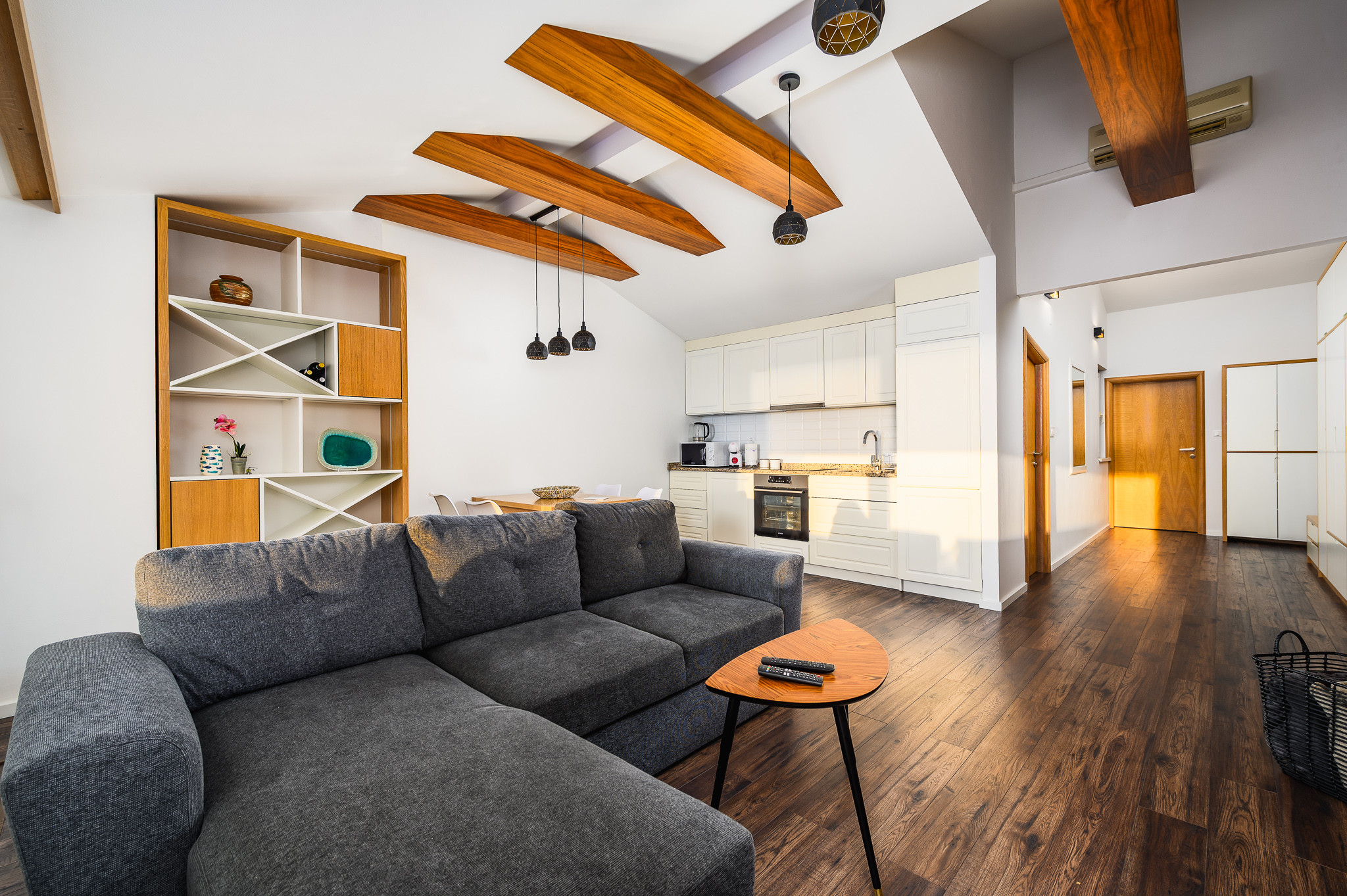 L'appartamento vanta una cucina ben attrezzata, completa di frigorifero, macchina per il caffè e tutti gli utensili da cucina necessari, rendendo facile preparare deliziosi pasti e trascorrere del tempo di qualità insieme. La zona giorno dispone di un comodo divano letto matrimoniale, che offre ulteriore spazio per dormire per la tua festa. La camera da letto è arredata con un comodo letto king-size, che assicura un sonno ristoratore.