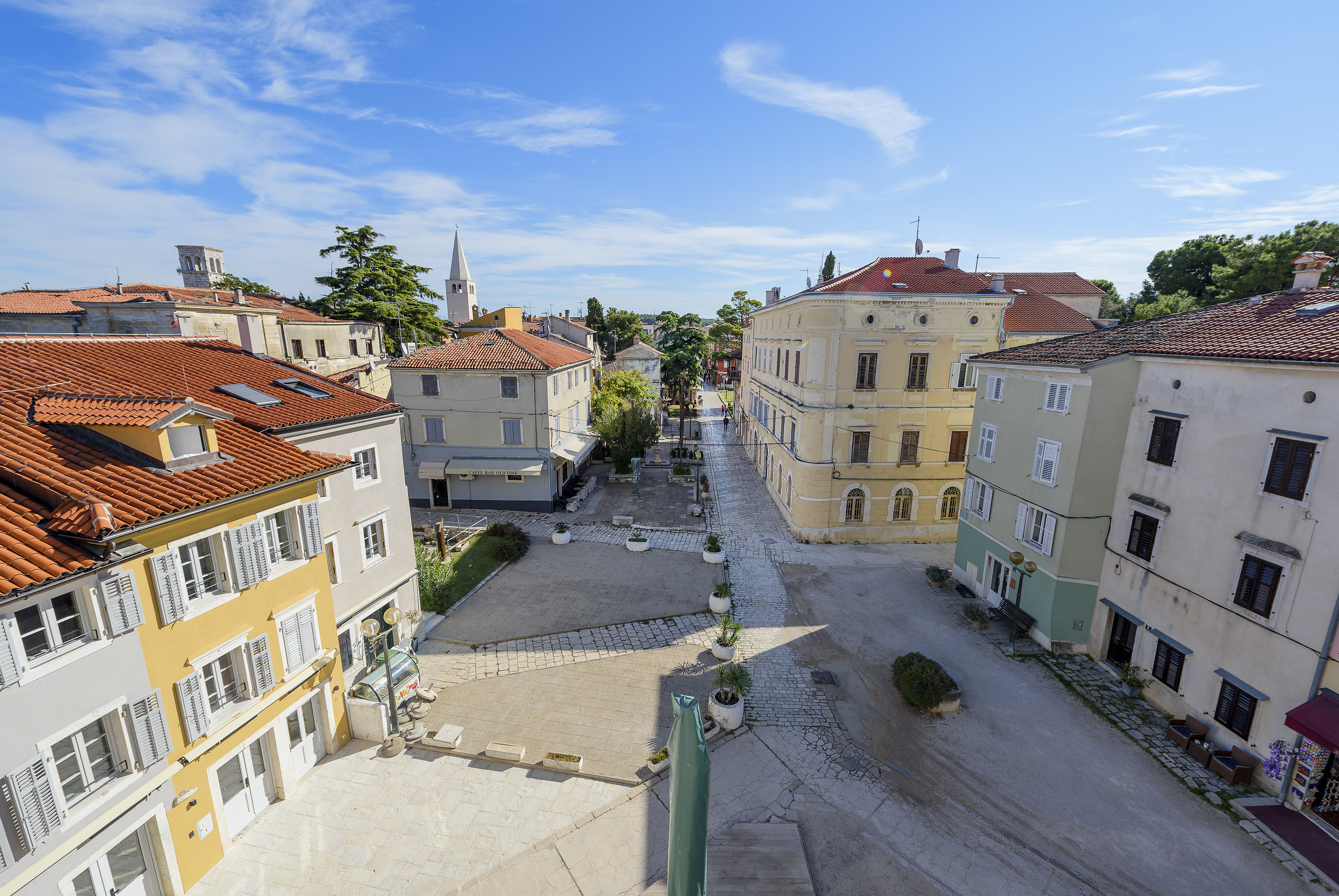 Si trova nel centro storico di Parenzo e nell'edificio medievale, in cima al edificio..