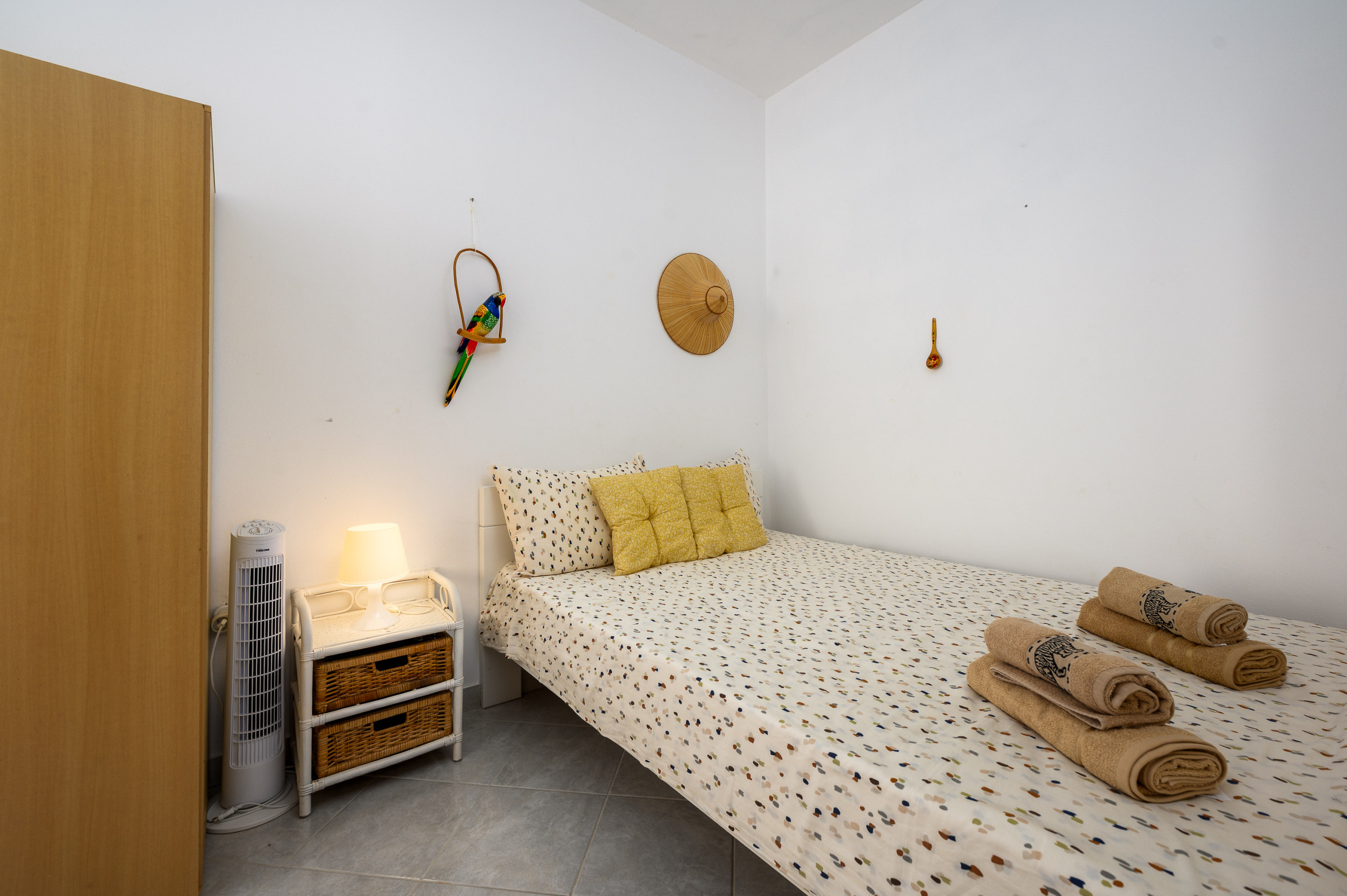 Si compone di un soggiorno, sala da pranzo e cucina, un bagno con doccia e due camere da letto, una con letto matrimoniale e l'altra con due letti singoli.