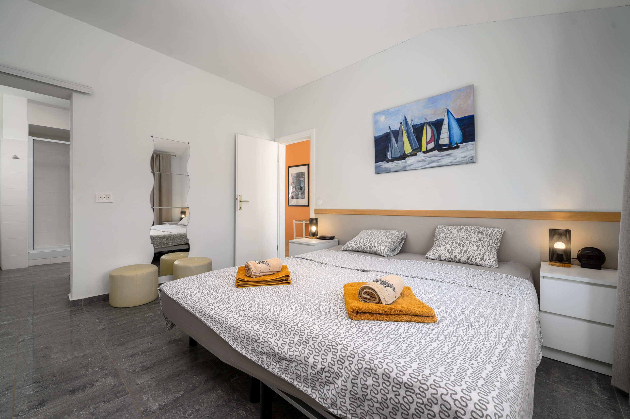 Si compone di un soggiorno, sala da pranzo e cucina, un bagno con doccia e due camere da letto, una con letto matrimoniale e l'altra con due letti singoli.