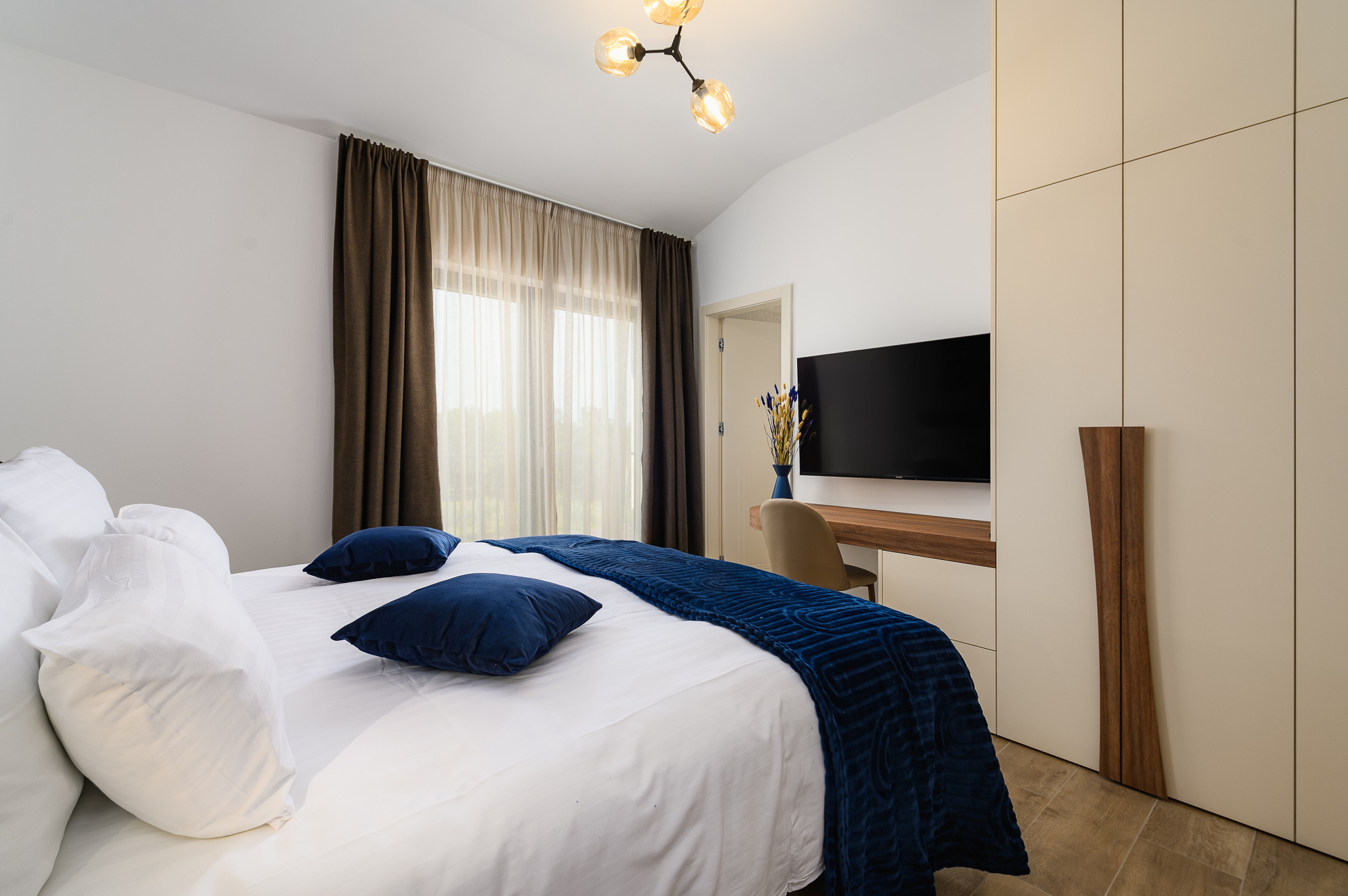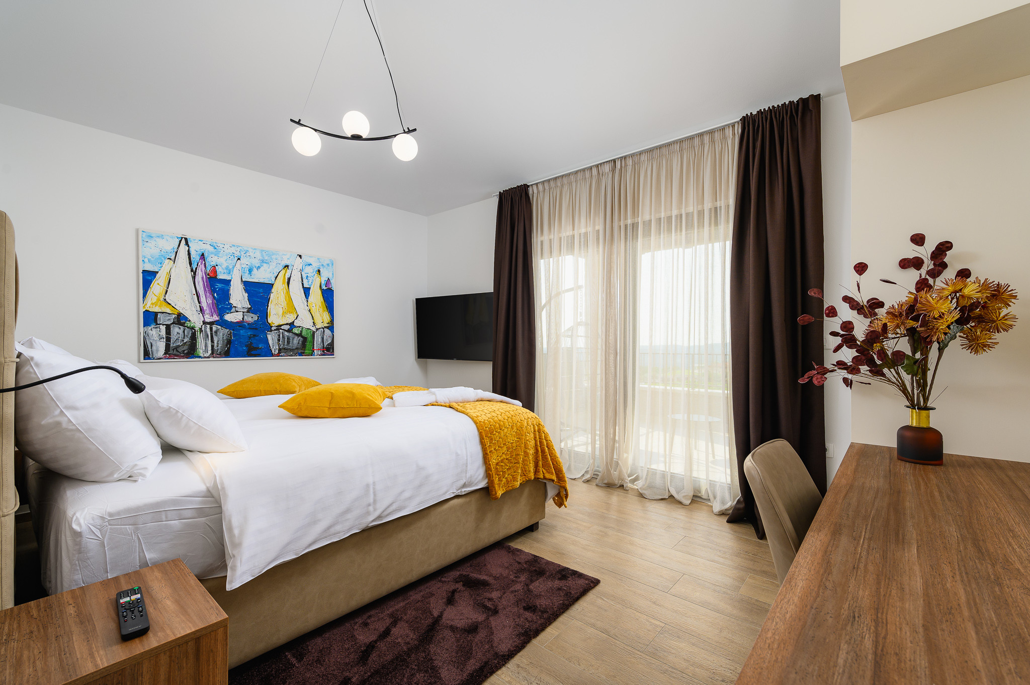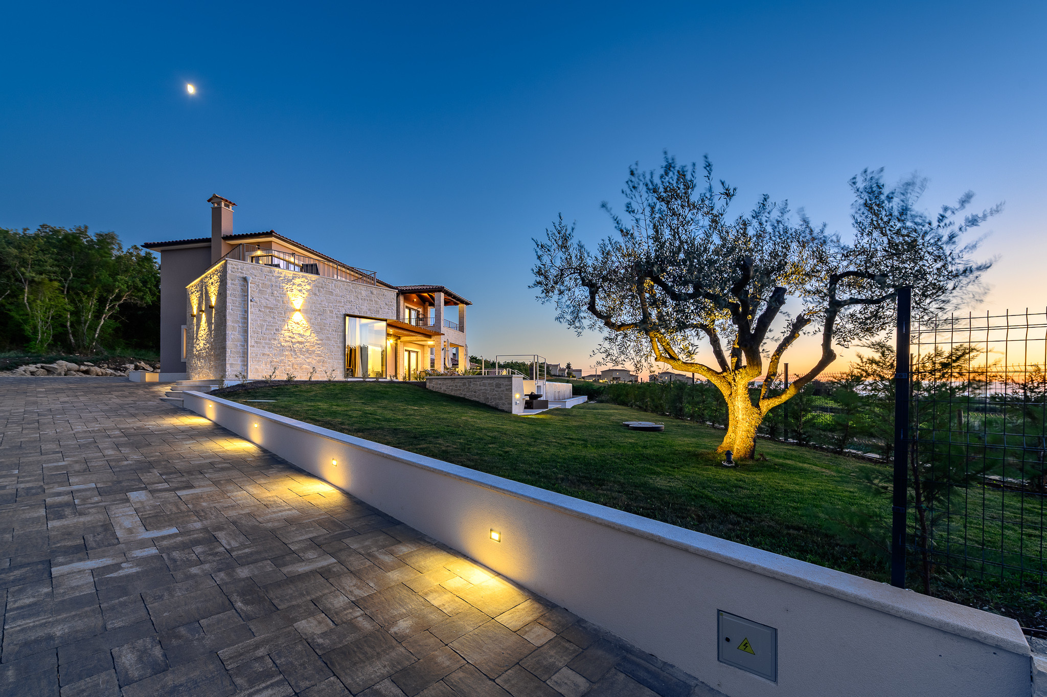 Questa splendida villa di lusso vicino a Bajkini ha quattro eleganti camere da letto con letti matrimoniali, ognuna con il proprio bagno en-suite, una spaziosa cucina e una zona pranzo. Il confortevole soggiorno, così come l'intera villa, è ispirato a colori terrosi e alla bellezza della natura, per creare un'atmosfera unica e rilassante, in contatto con la natura.