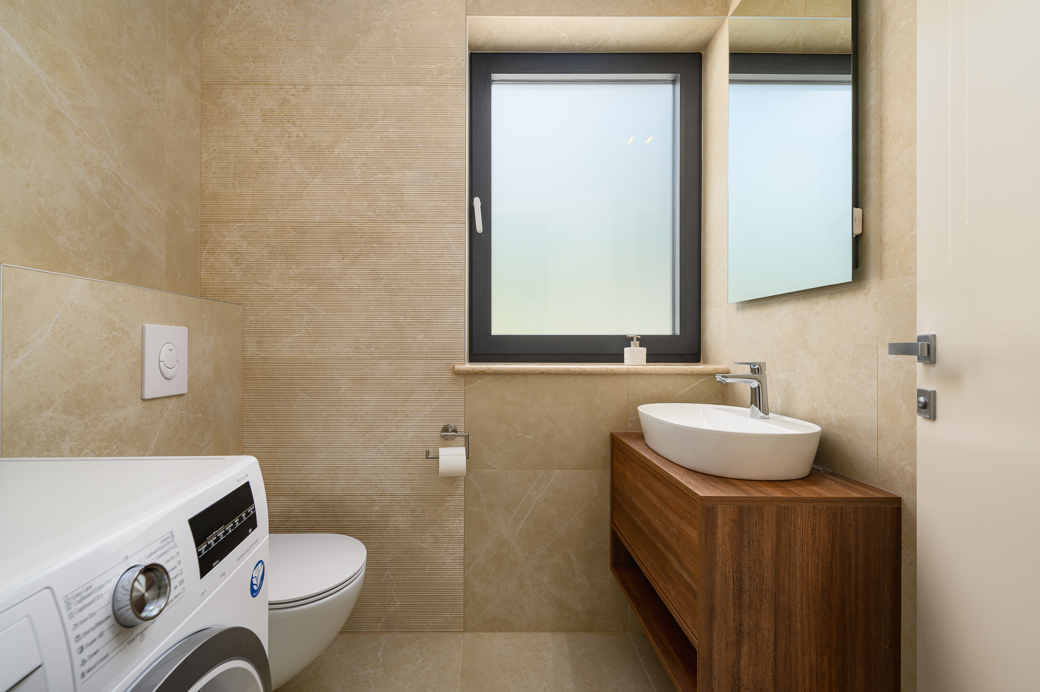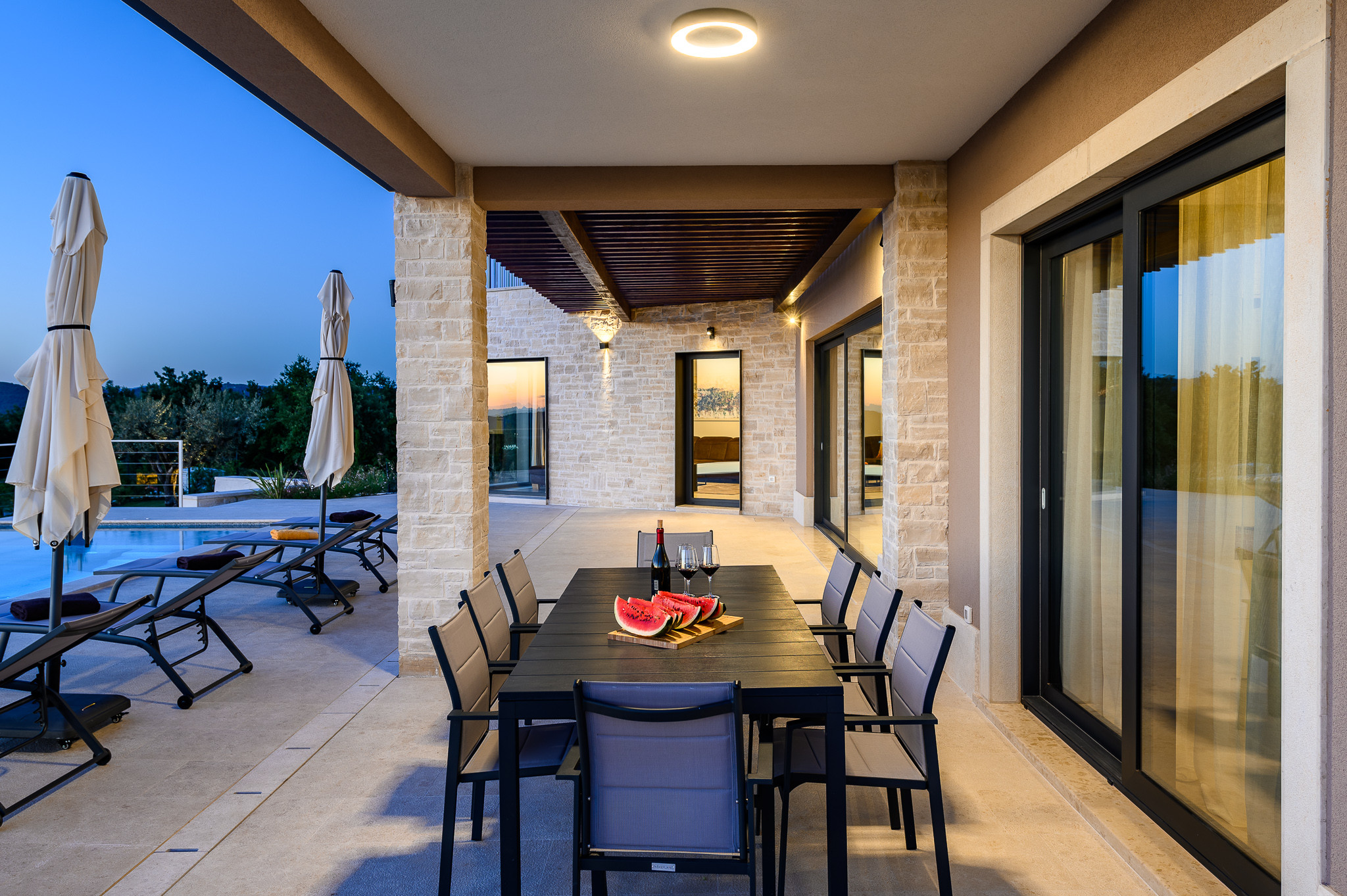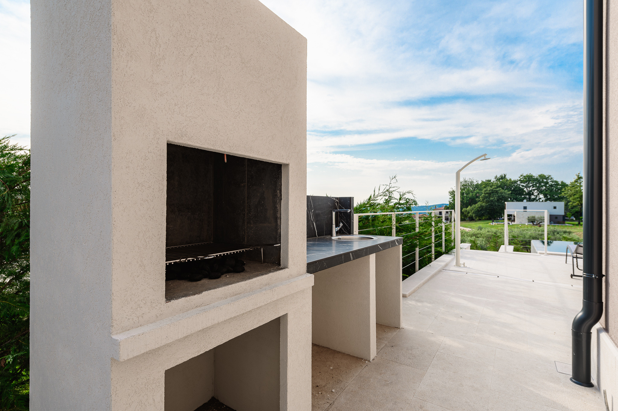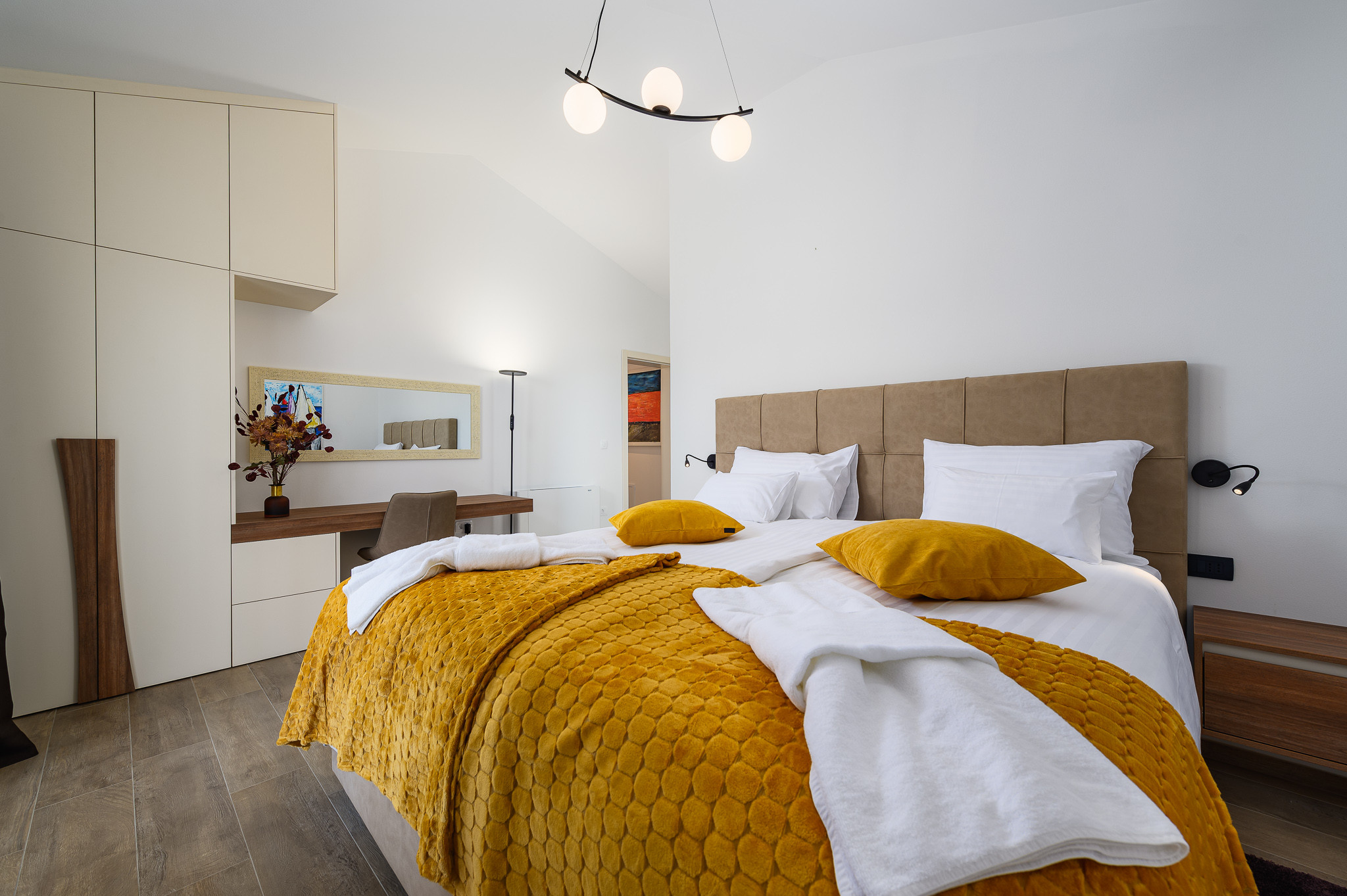Questa splendida villa di lusso vicino a Bajkini ha quattro eleganti camere da letto con letti matrimoniali, ognuna con il proprio bagno en-suite, una spaziosa cucina e una zona pranzo. Il confortevole soggiorno, così come l'intera villa, è ispirato a colori terrosi e alla bellezza della natura, per creare un'atmosfera unica e rilassante, in contatto con la natura.