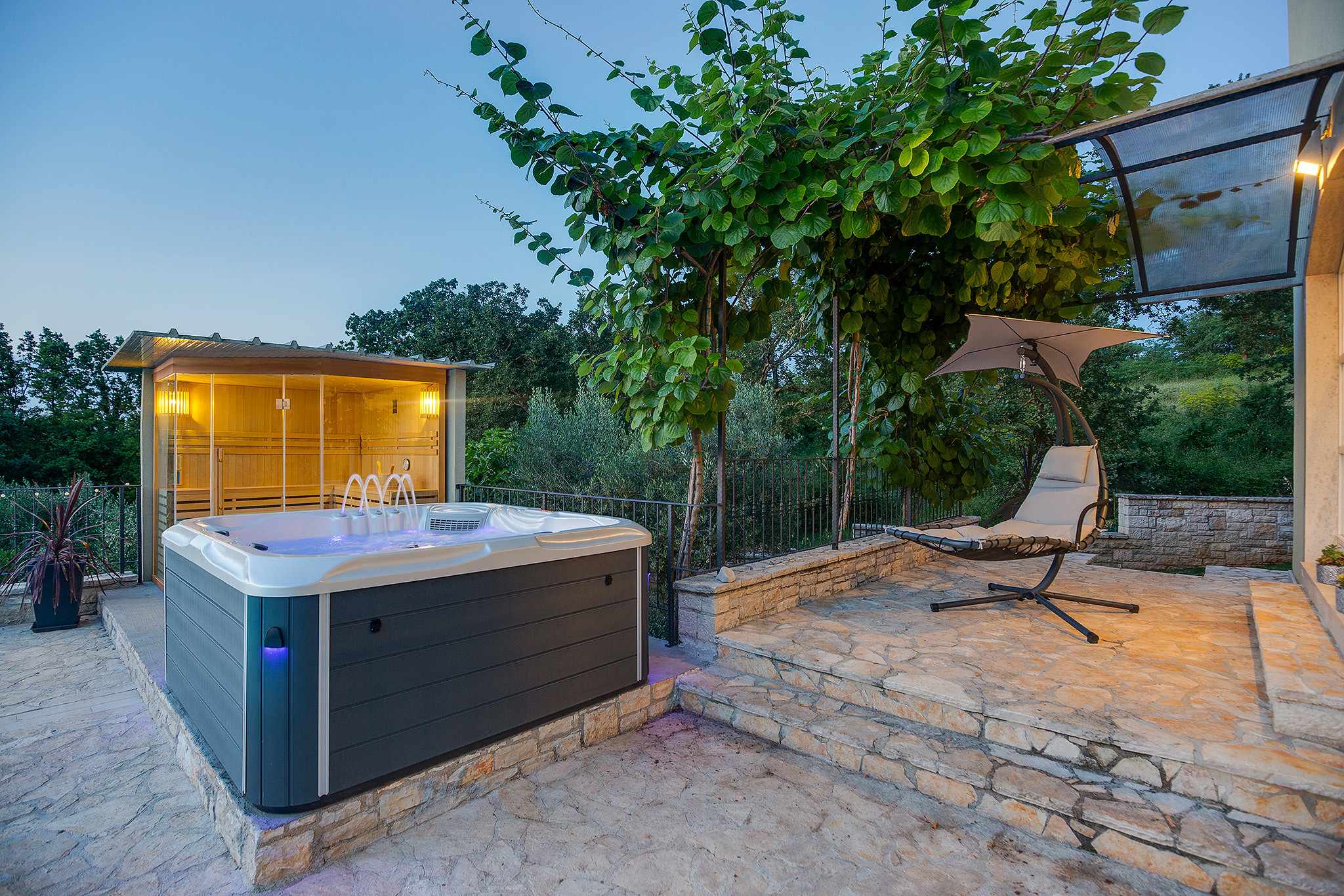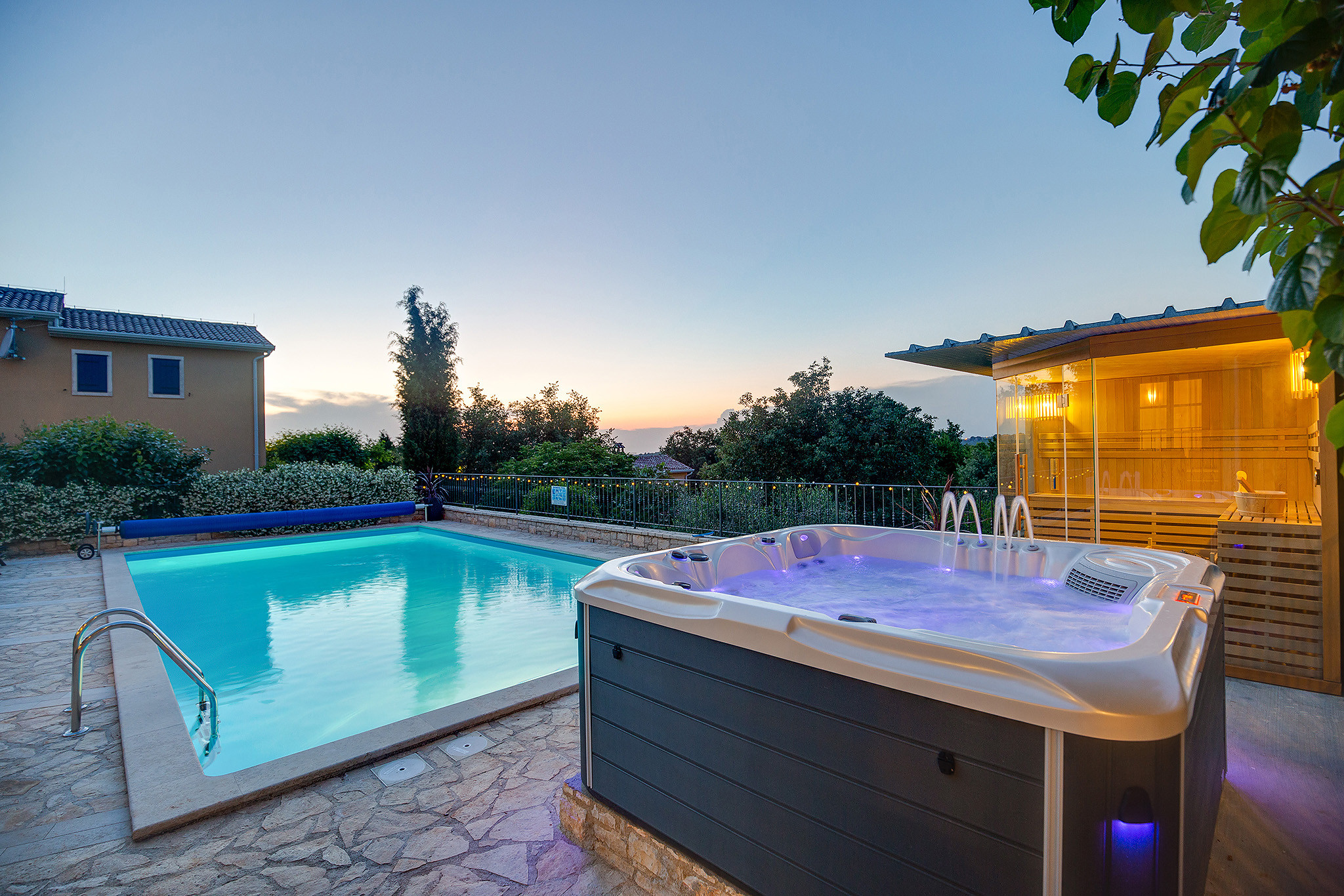 All'esterno, la struttura dispone di una piscina privata e di un giardino, che offrono un'oasi tranquilla per prendere il sole croato. Inoltre, gli ospiti possono rilassarsi nella sauna o nella vasca idromassaggio, perfette per rilassarsi dopo una giornata di esplorazione.
