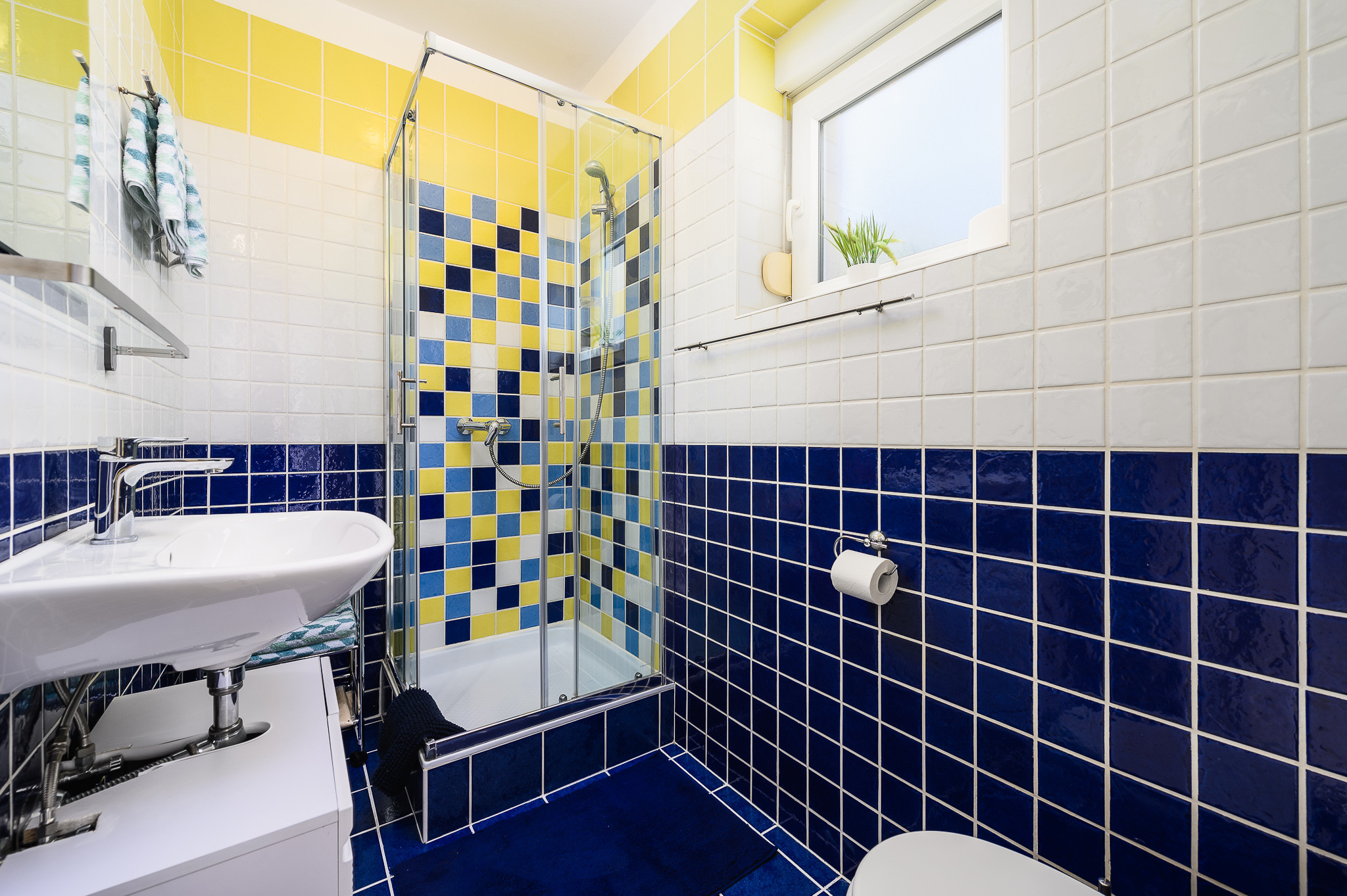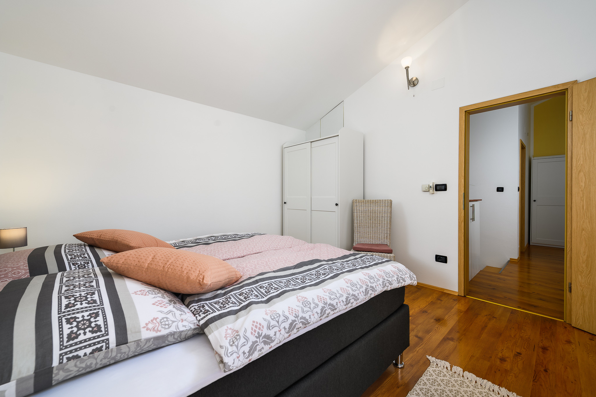 Si compone di un ampio soggiorno/sala da pranzo e di una cucina completamente attrezzata, una camera matrimoniale e un bagno con doccia al piano terra e tre camere matrimoniali che condividono un bagno con doccia al primo piano.