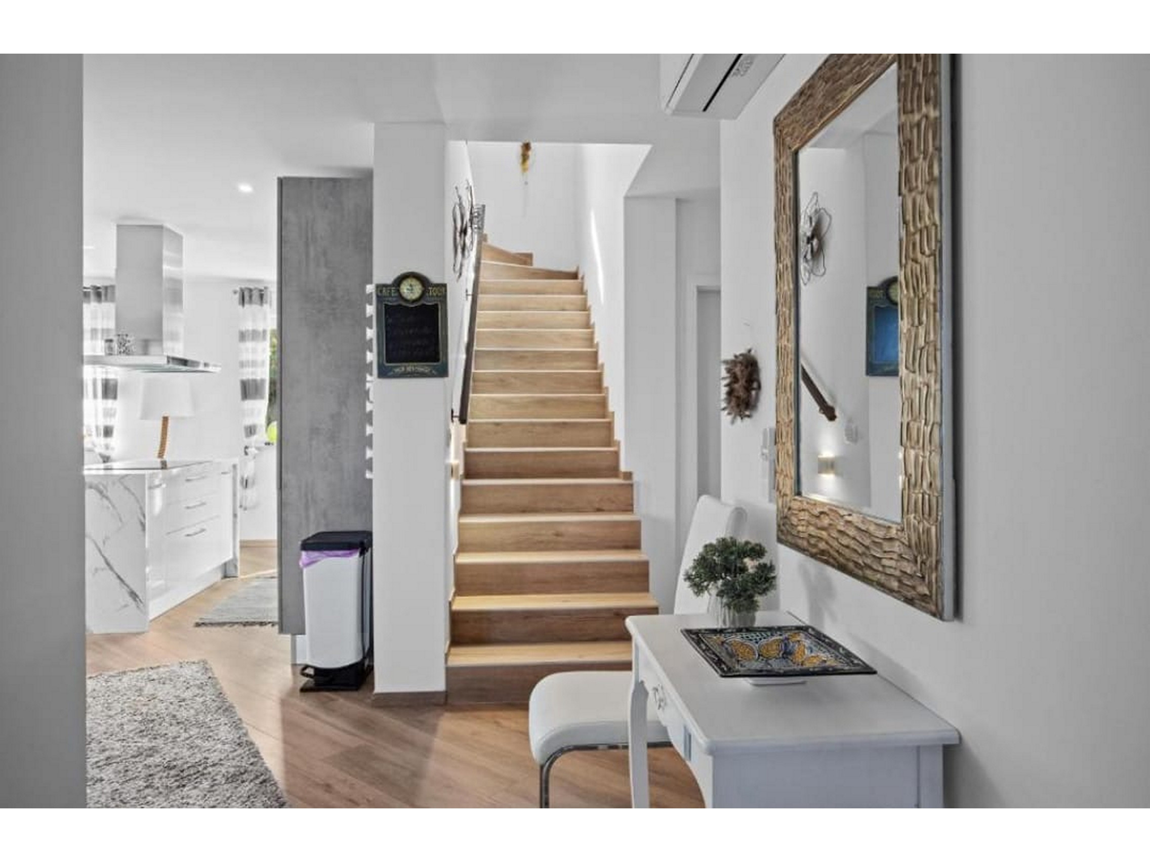 Uscendo, sarete accolti dal lussureggiante giardino con piscina, completo di barbecue e mobili da esterno. Questo spazio offre l'ideale per pranzare all'aperto e socializzare. La proprietà dispone anche di un balcone e di un'ampia terrazza, che offrono splendide viste e ampie possibilità di prendere il sole.