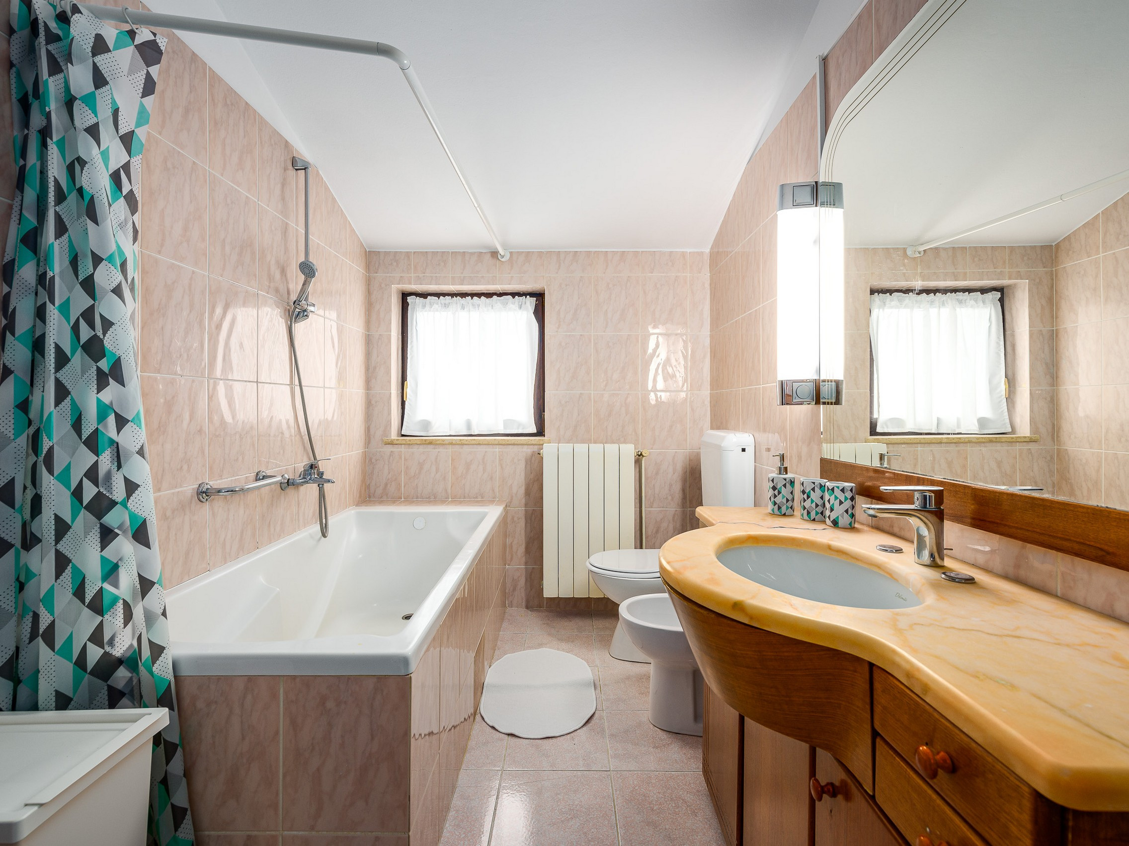 Al piano superiore ci sono 2 camere matrimoniali e una camera doppia e un altro bagno con vasca.